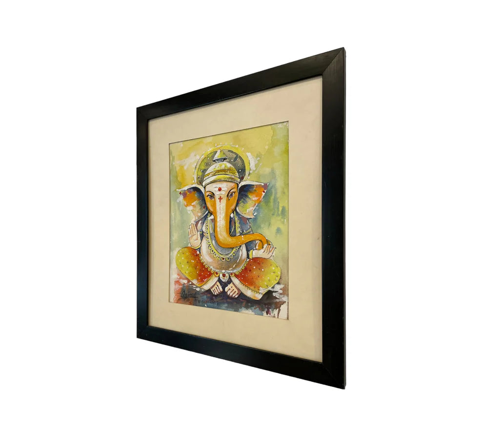 Regular price Rs. 4,500.00Enhance your space with the divine presence of Lord Ganesha through this exquisite acrylic painting on canvas. Radiating peace, prosperity, and protection, this artwork captures Ganesha in a moment of blessing. Meticulous brushstrokes and vibrant colors enrich the spiritual ambiance of any room. Elegantly mounted on a white background and framed in sleek black, it blends seamlessly with any décor. Perfect for home, office, or spiritual sanctuaries, it brings Ganesha's blessings, wisdom, and auspiciousness to your life.