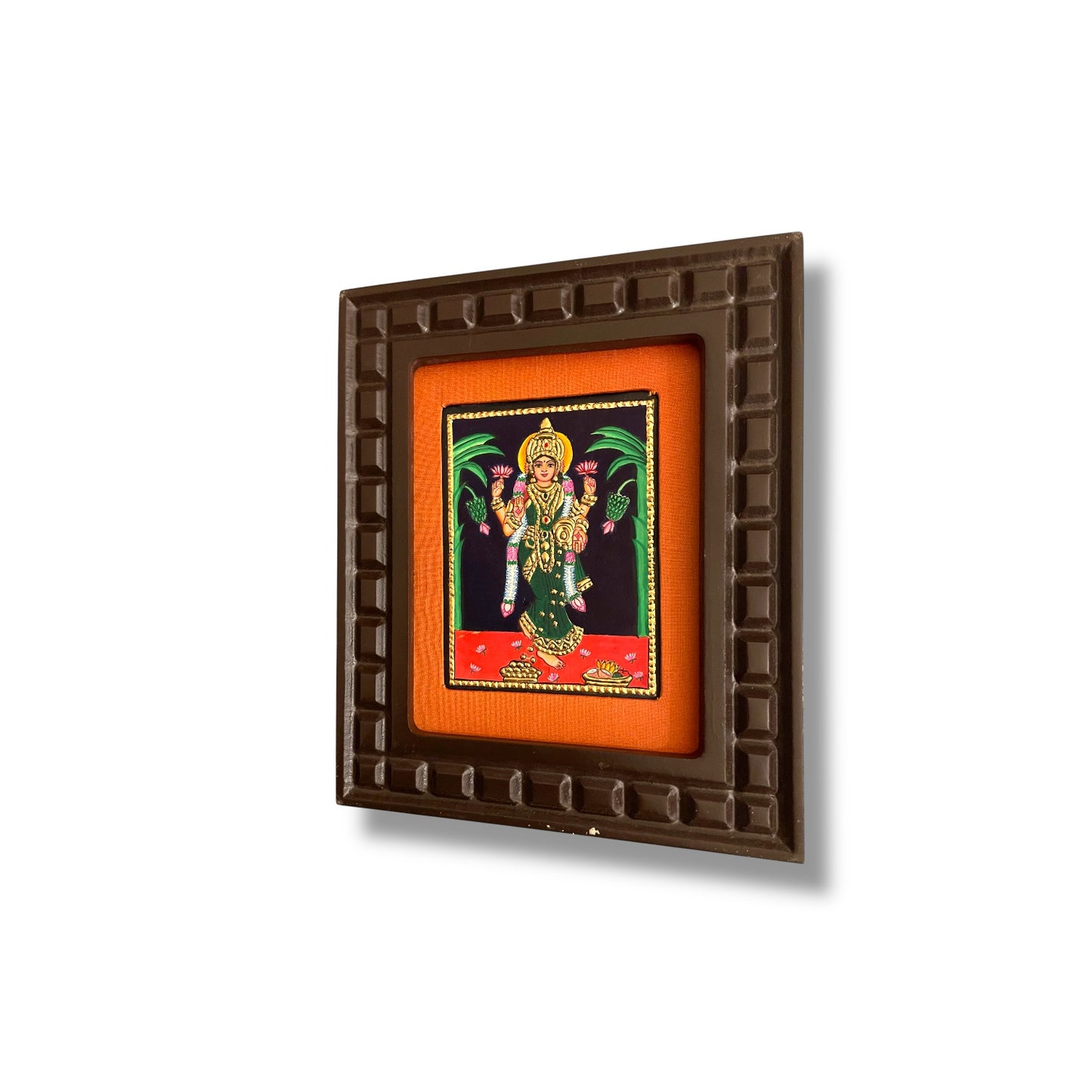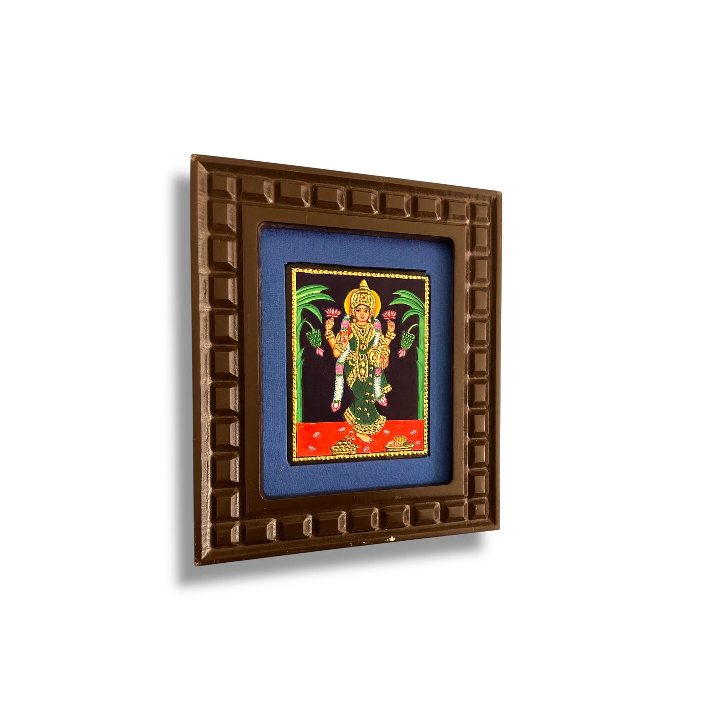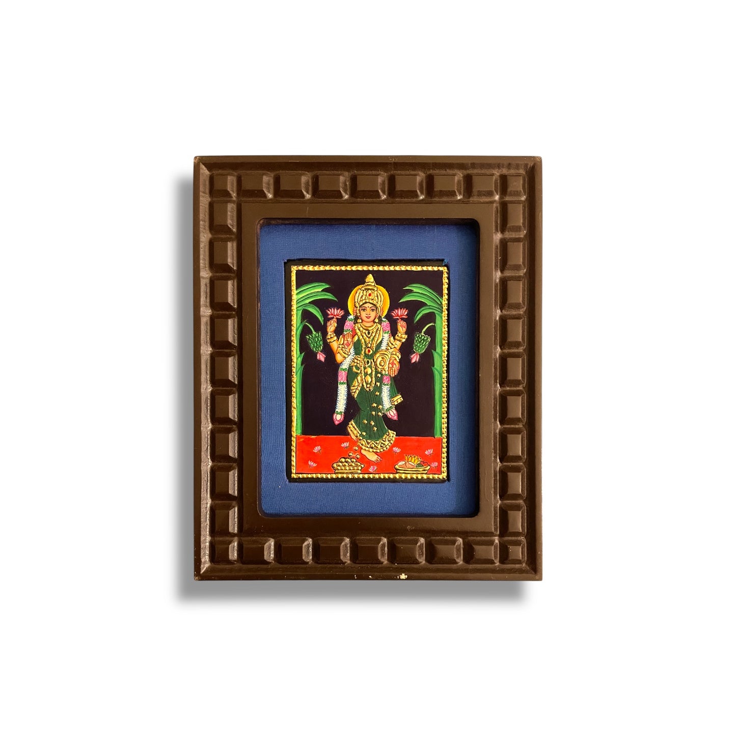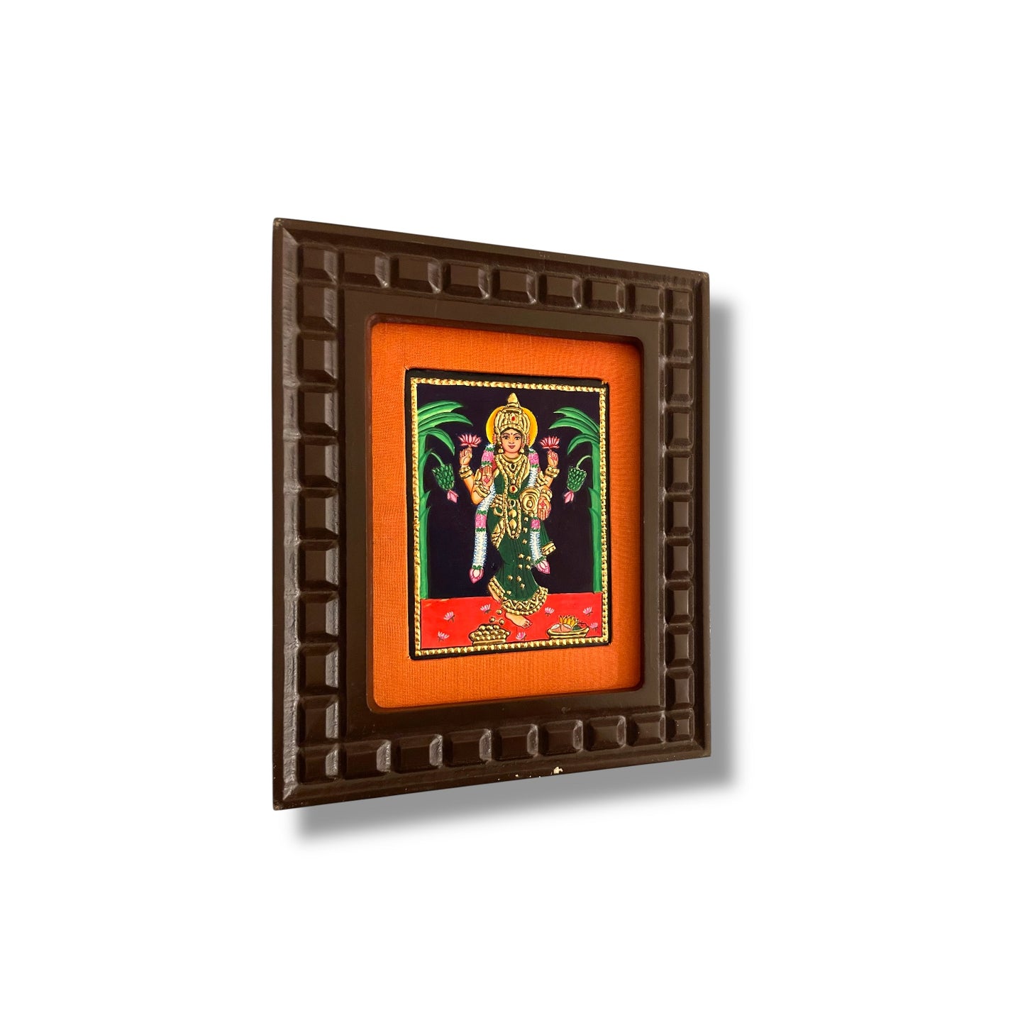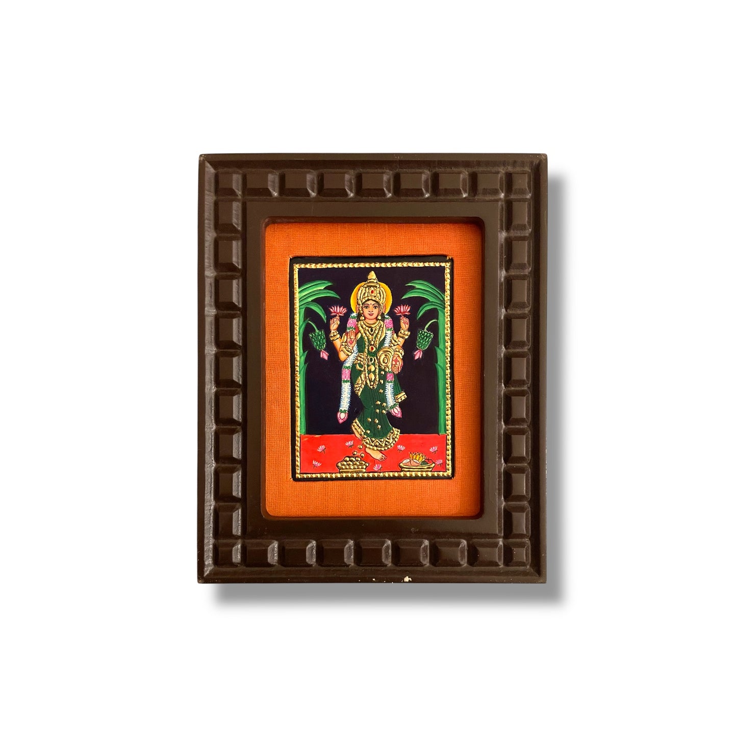 Goddess Lakshmi Tanjore Painting with Red, Indigo Blue, Orange, Rama Green and White Accents