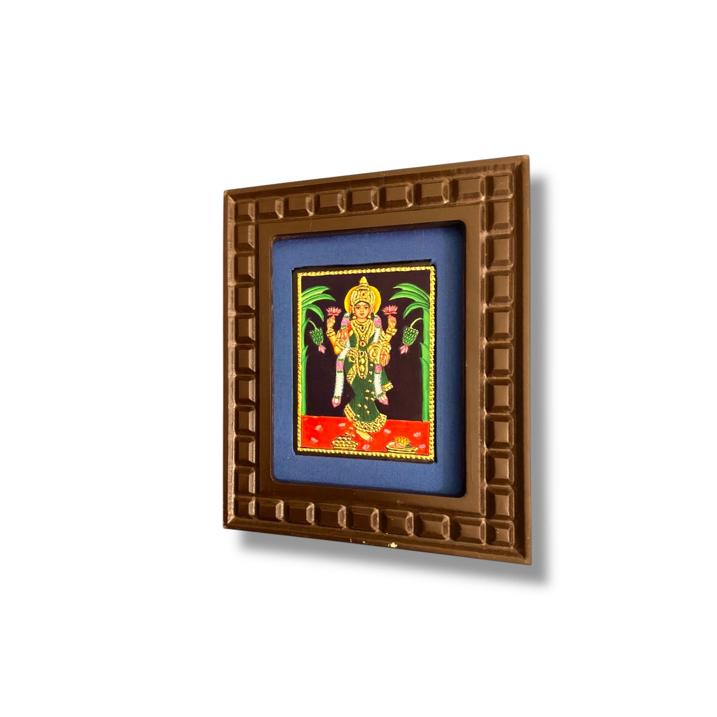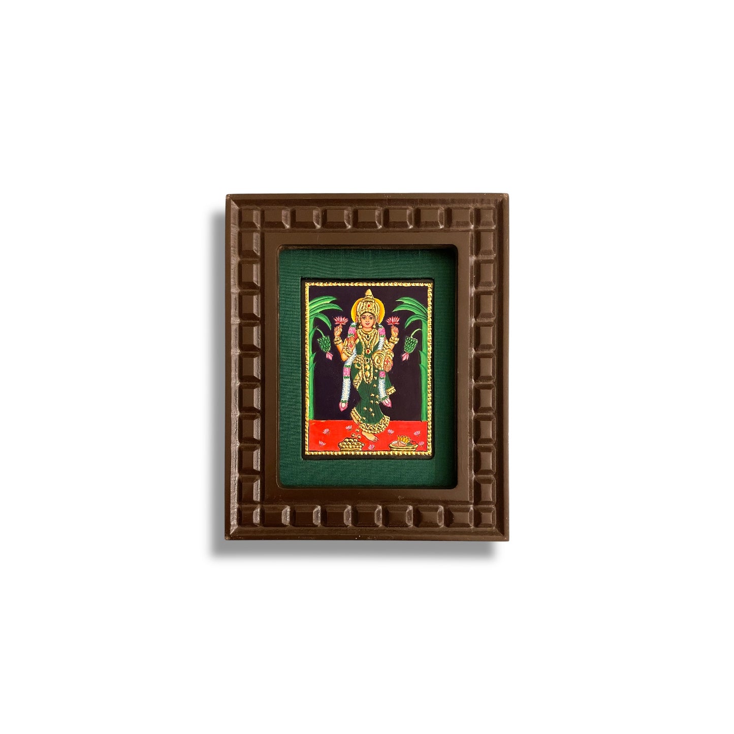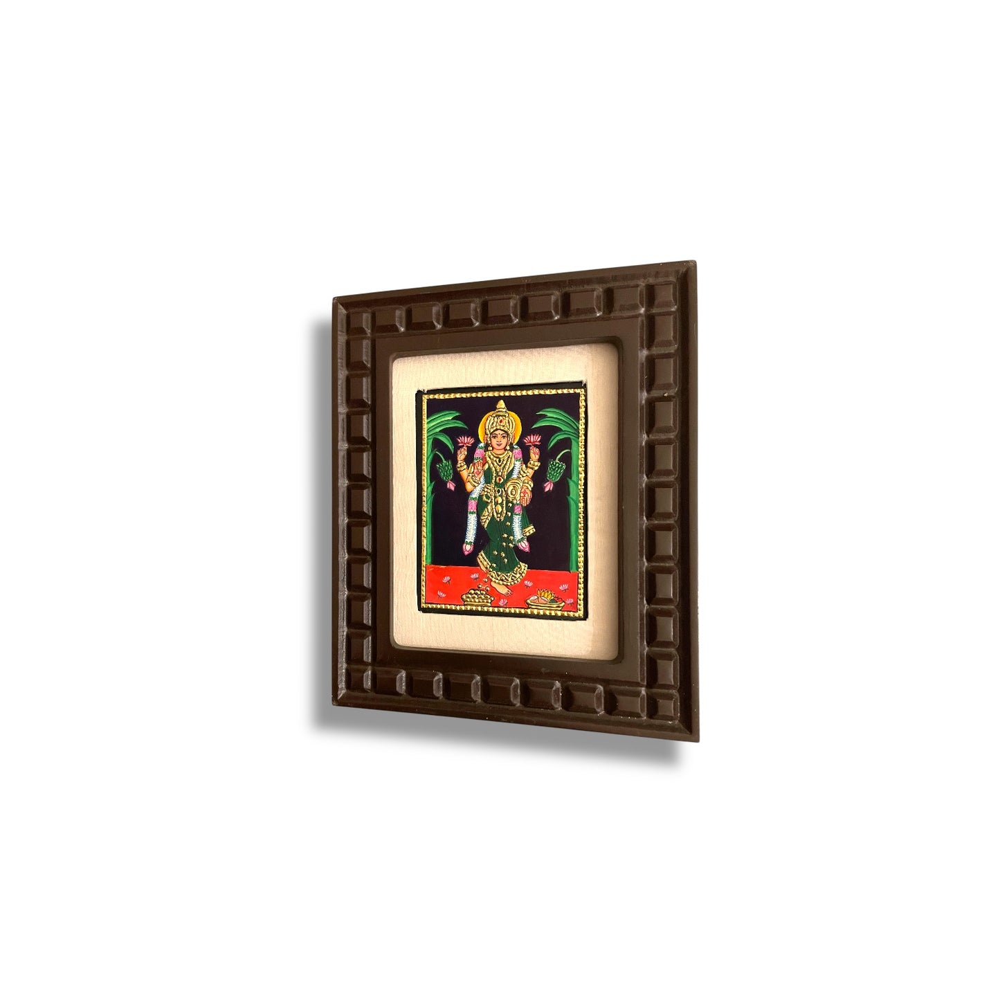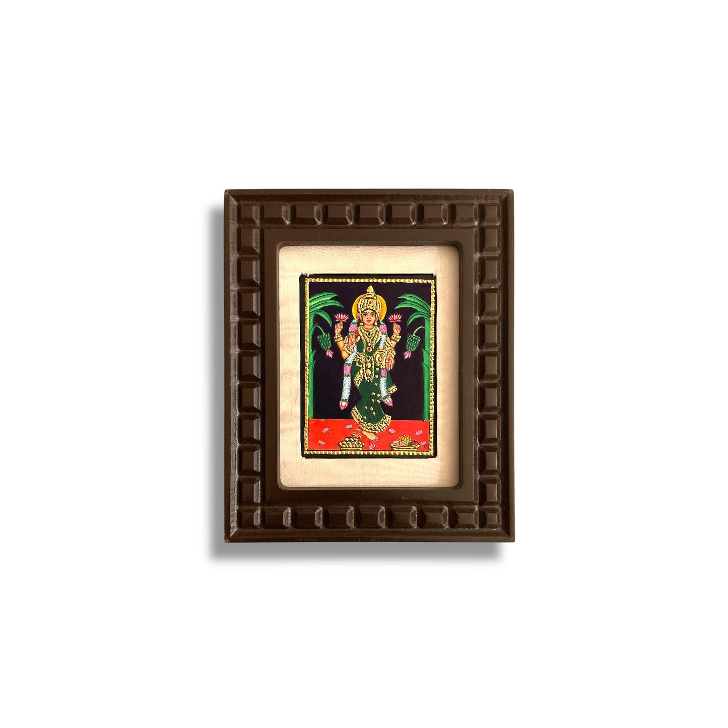 Goddess Lakshmi Tanjore Painting with Red, Indigo Blue, Orange, Rama Green and White Accents