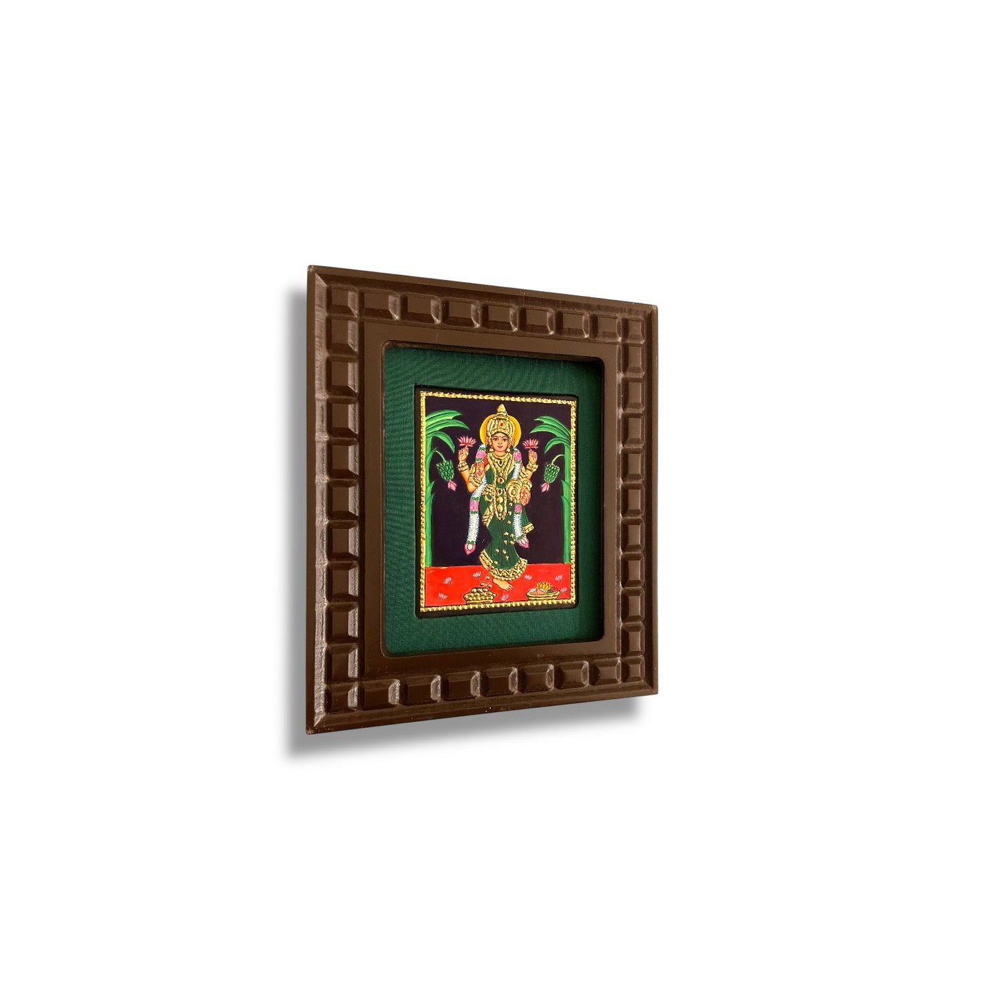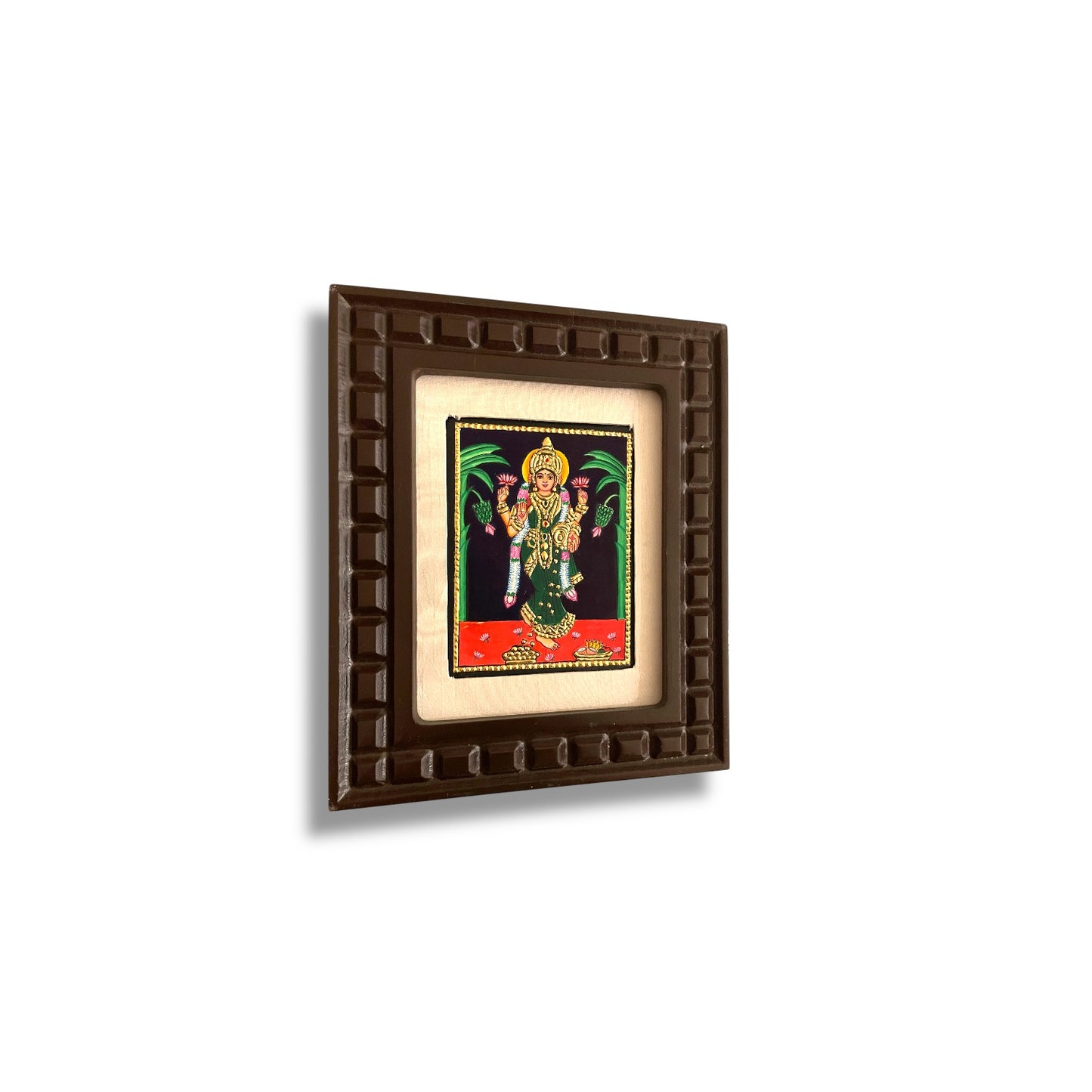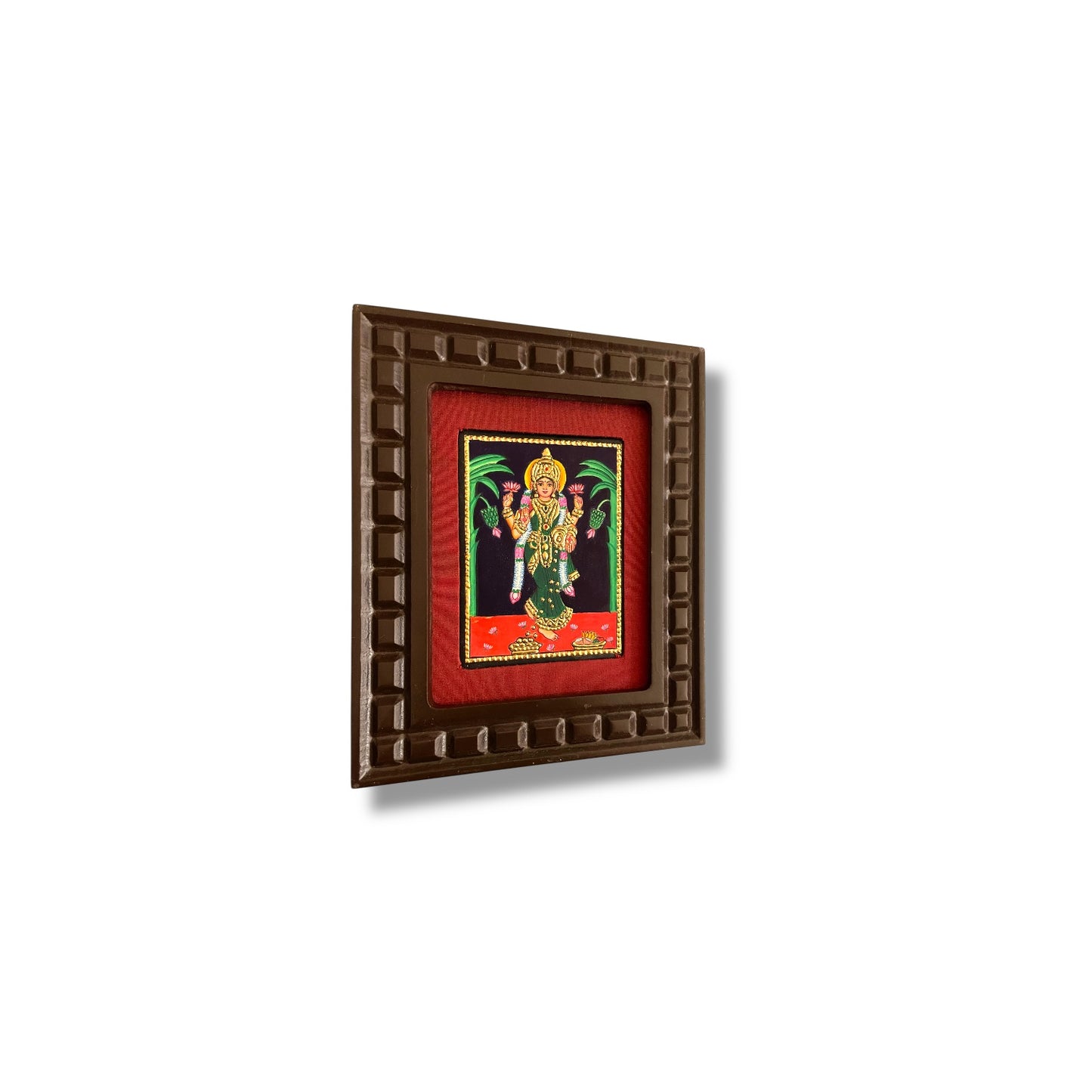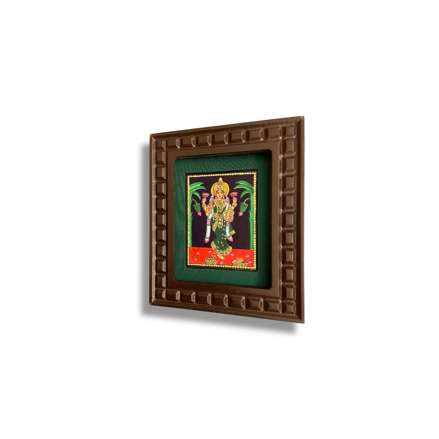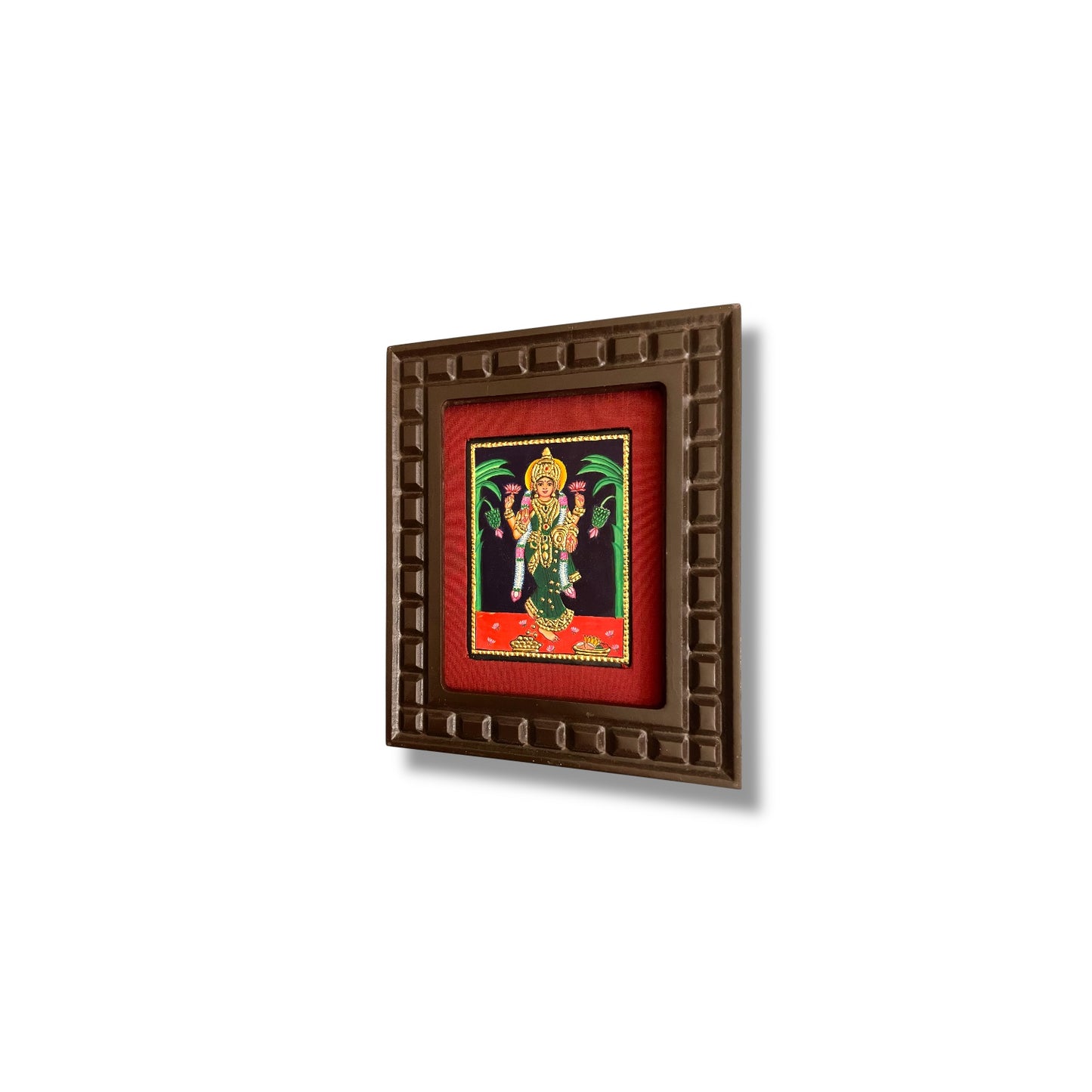 Goddess Lakshmi Tanjore Painting with Red, Indigo Blue, Orange, Rama Green and White Accents