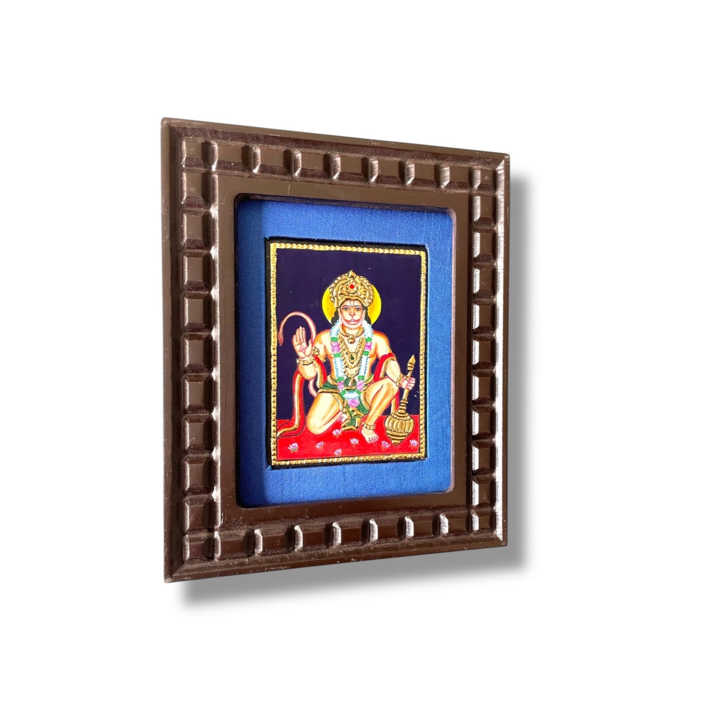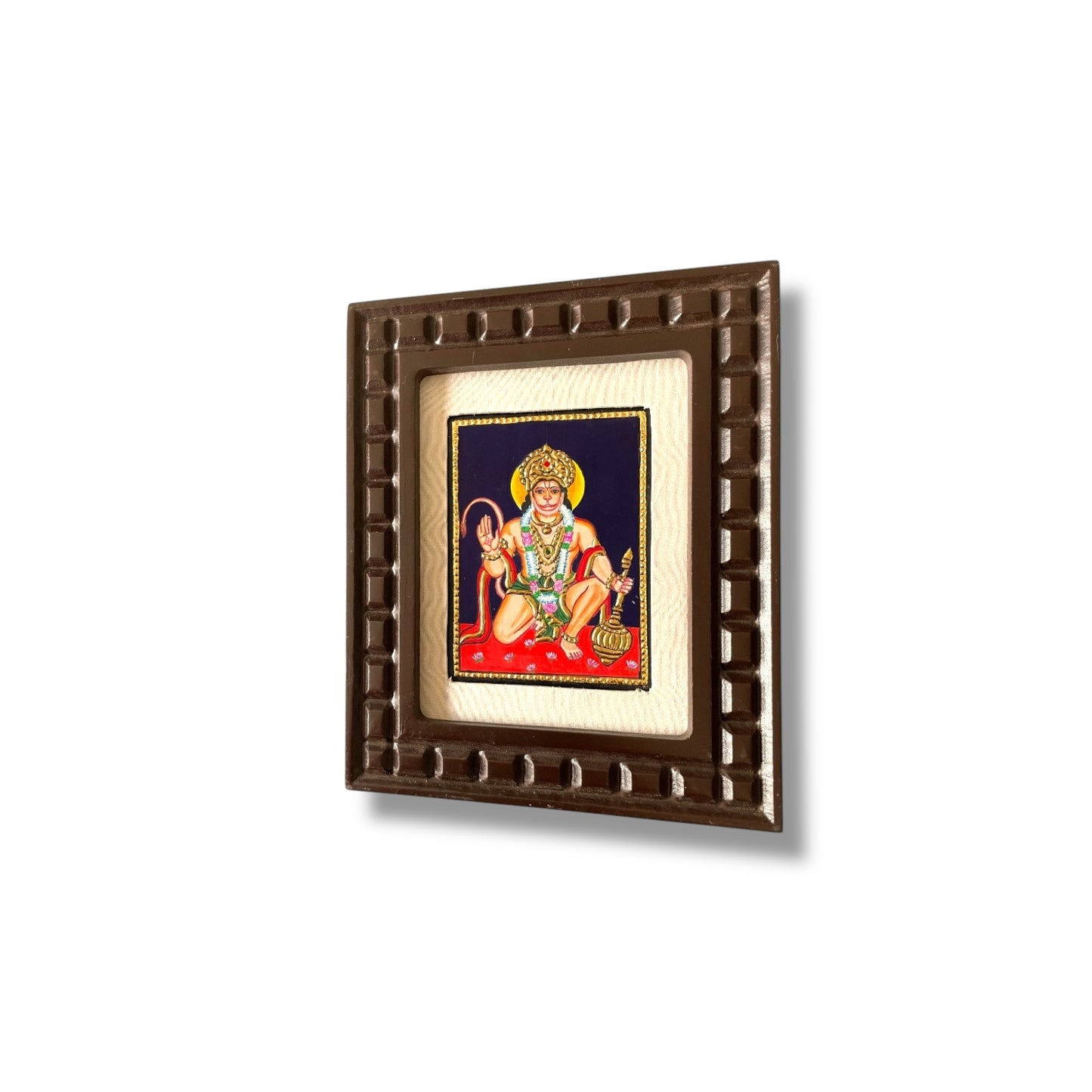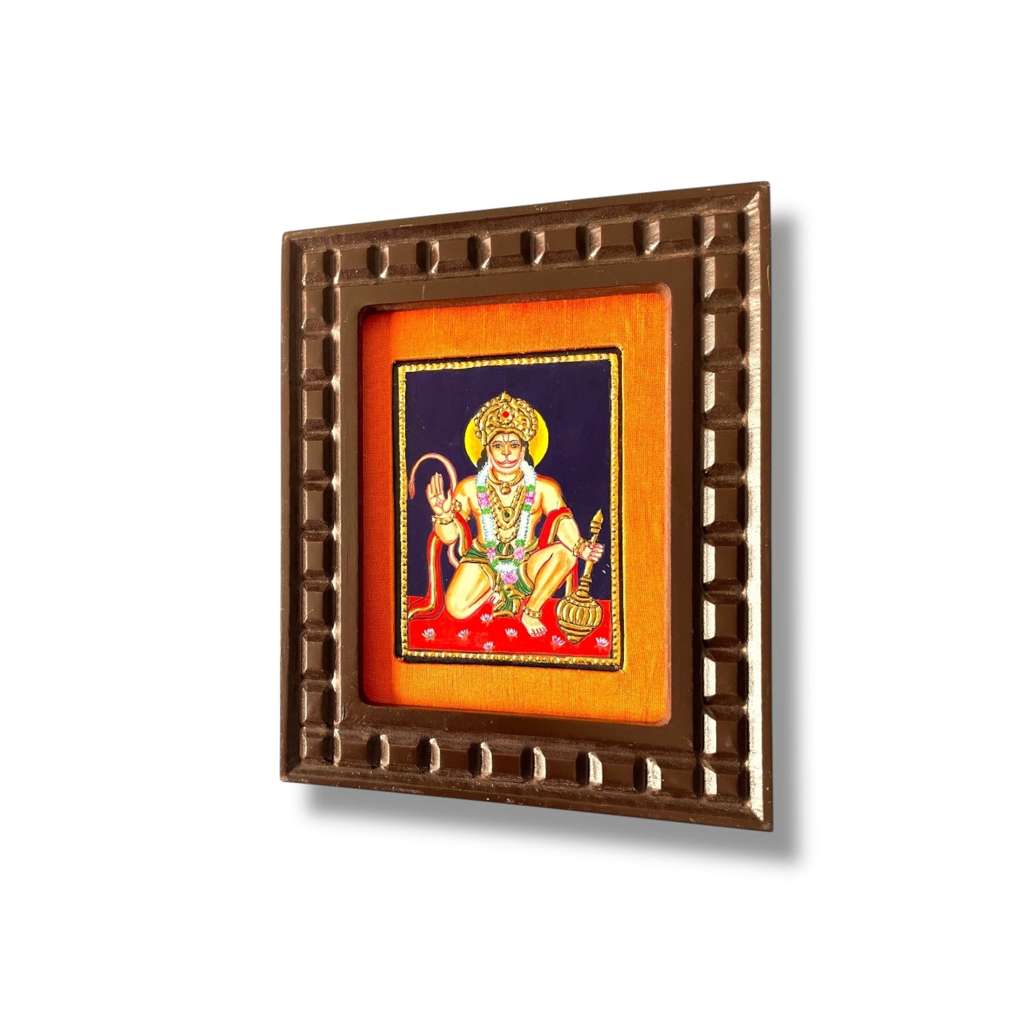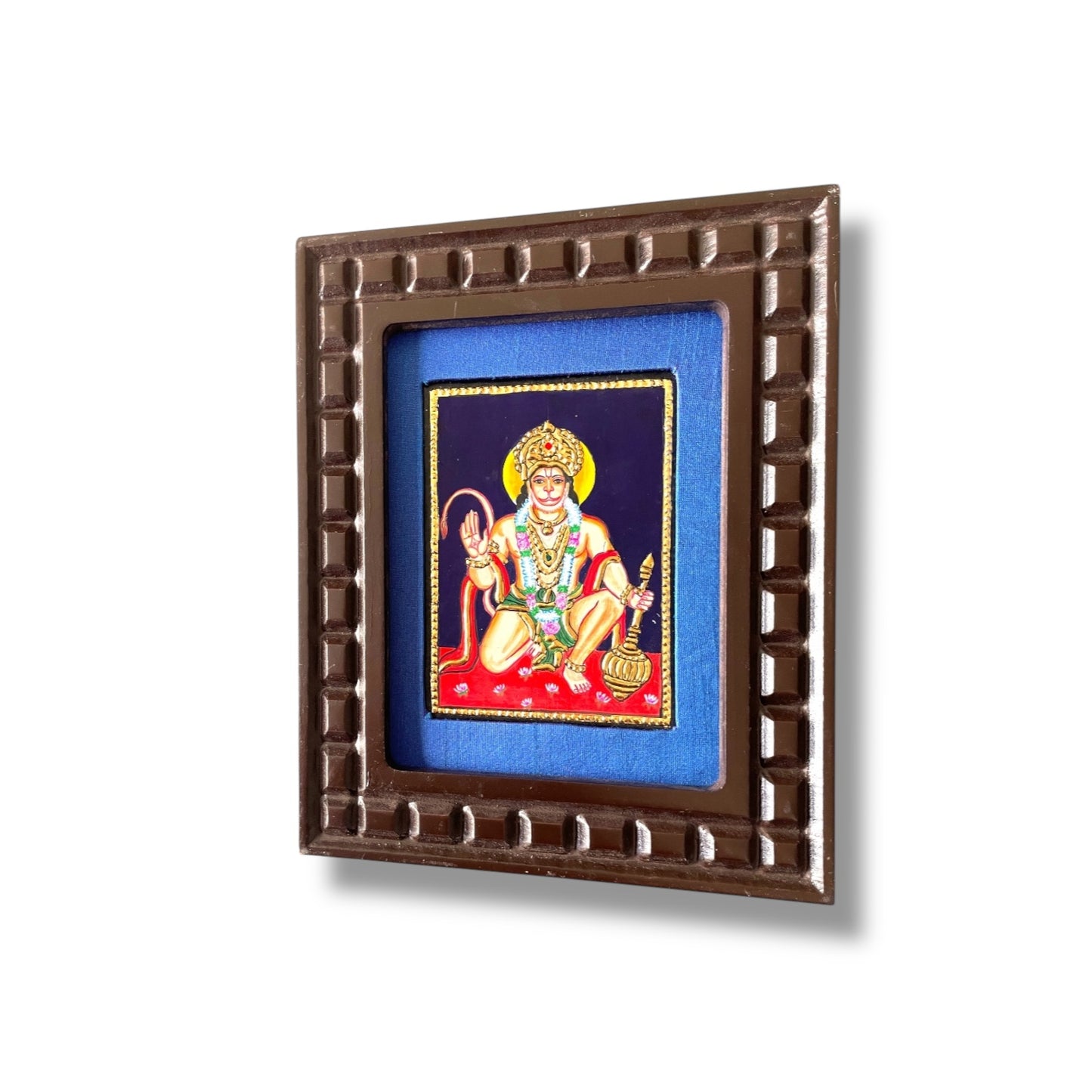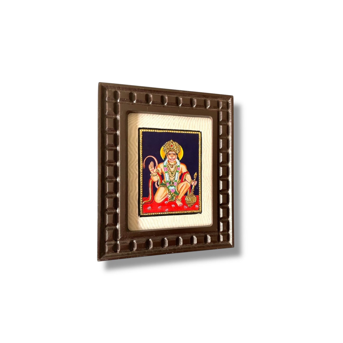 Hand-Painted Hanuman Tanjore Painting – Blessing Pose | Wooden Frame with Silk Mount (Green, Orange, Blue, Red)