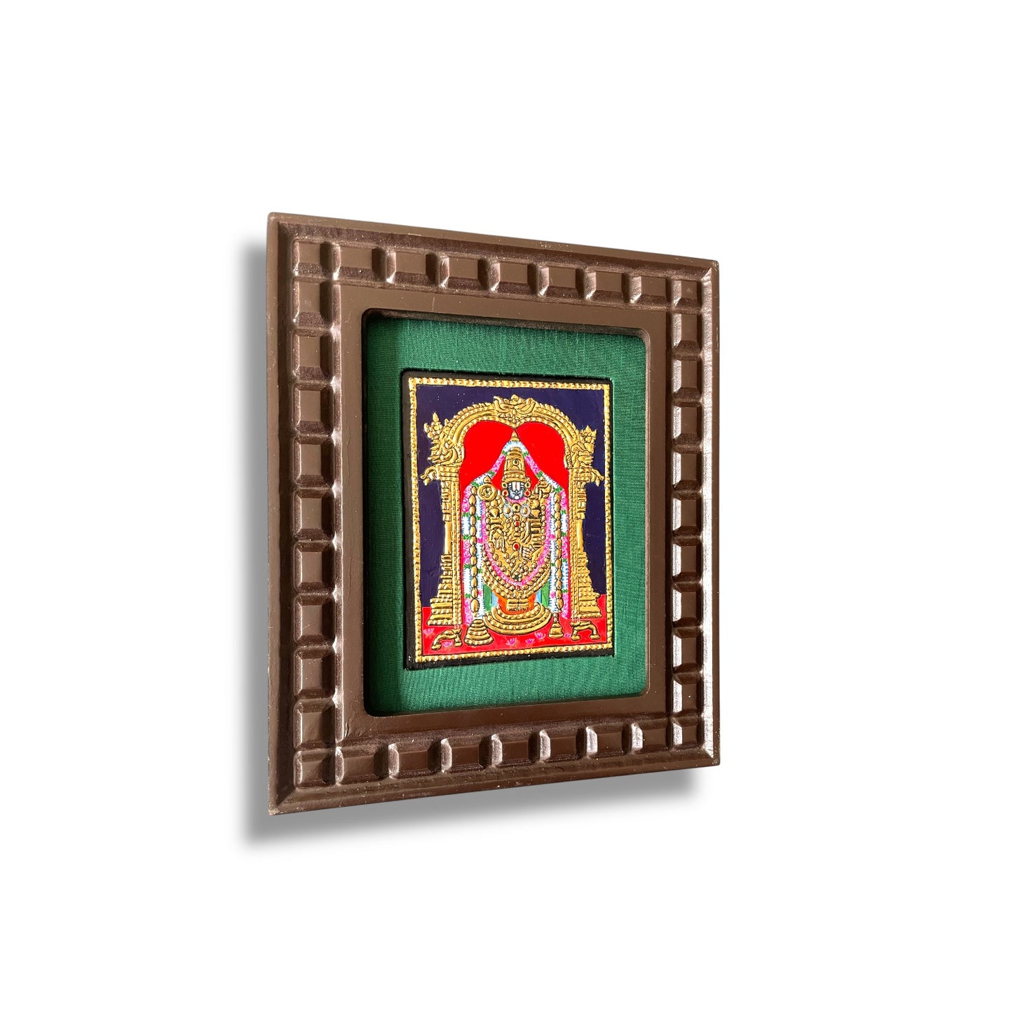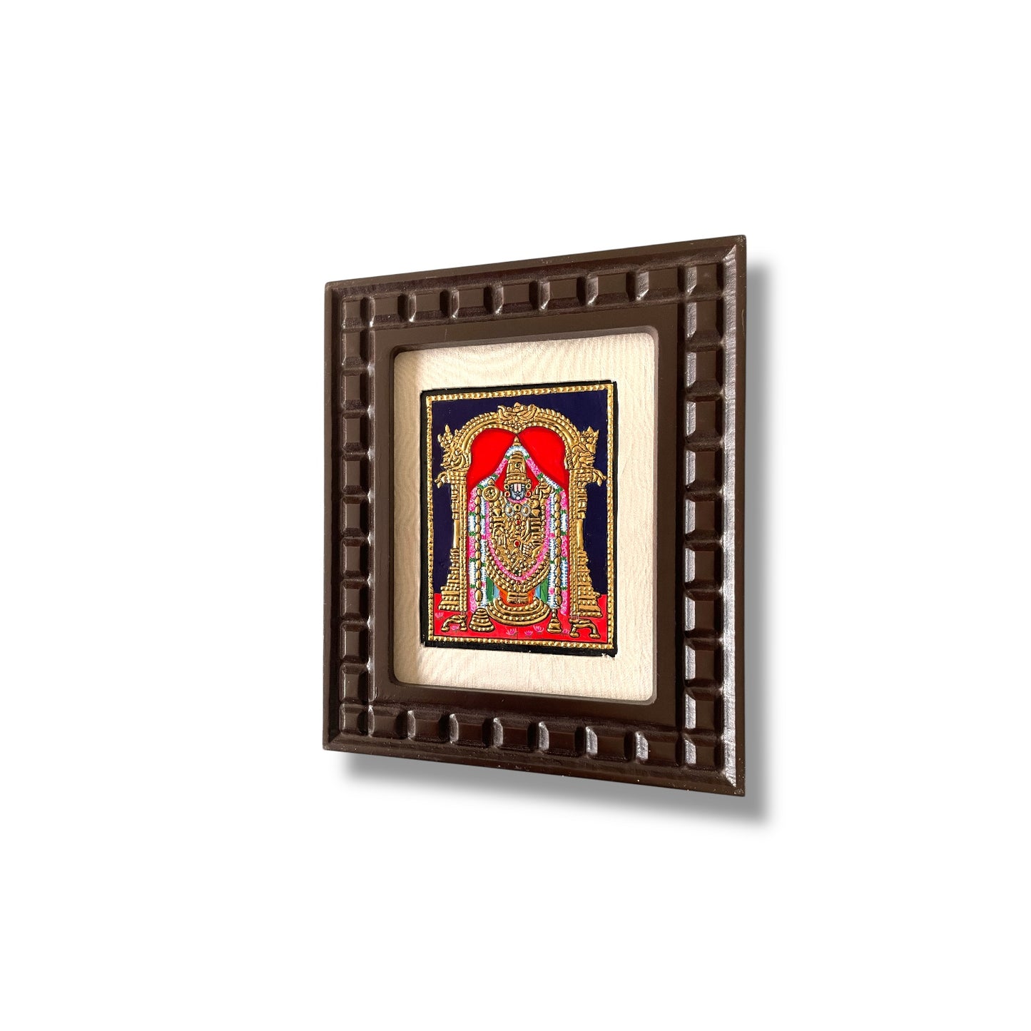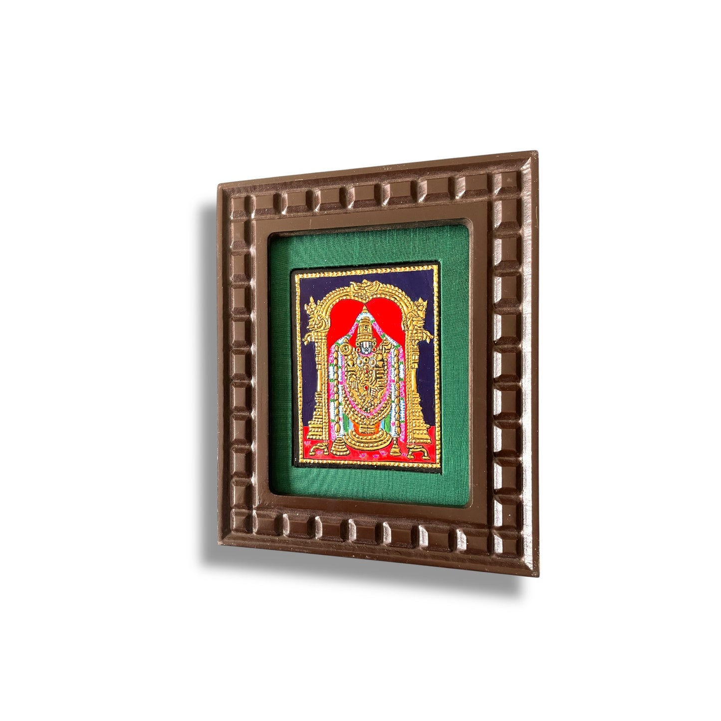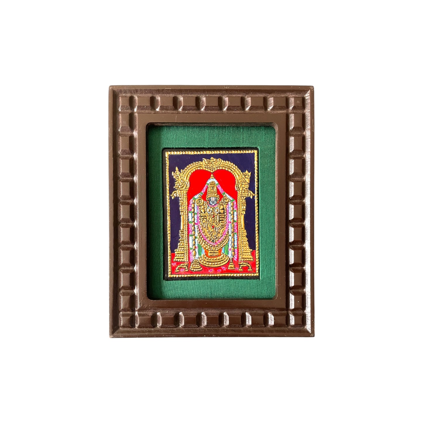 Depicts Lord Venkateshwara in traditional Tanjore art style.
