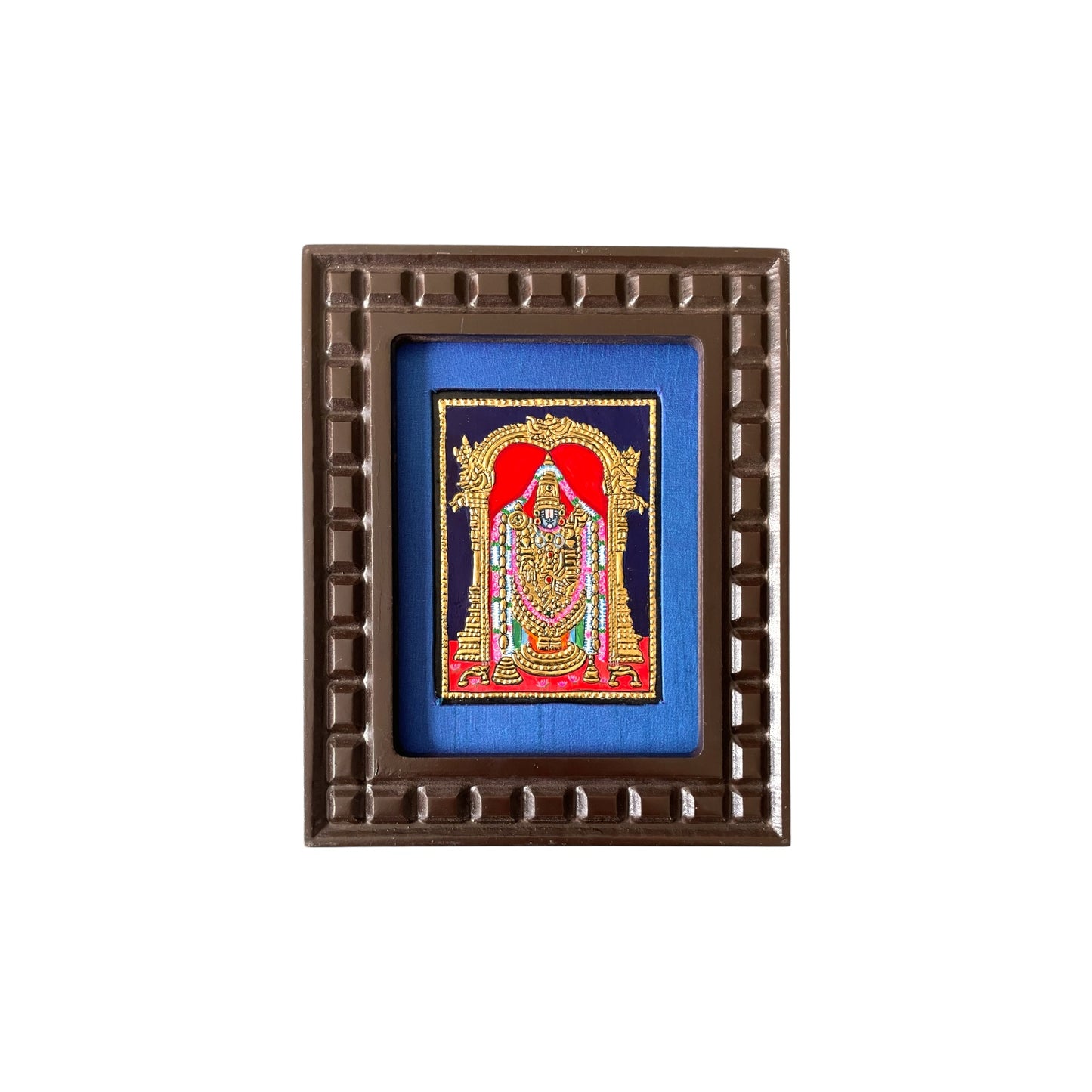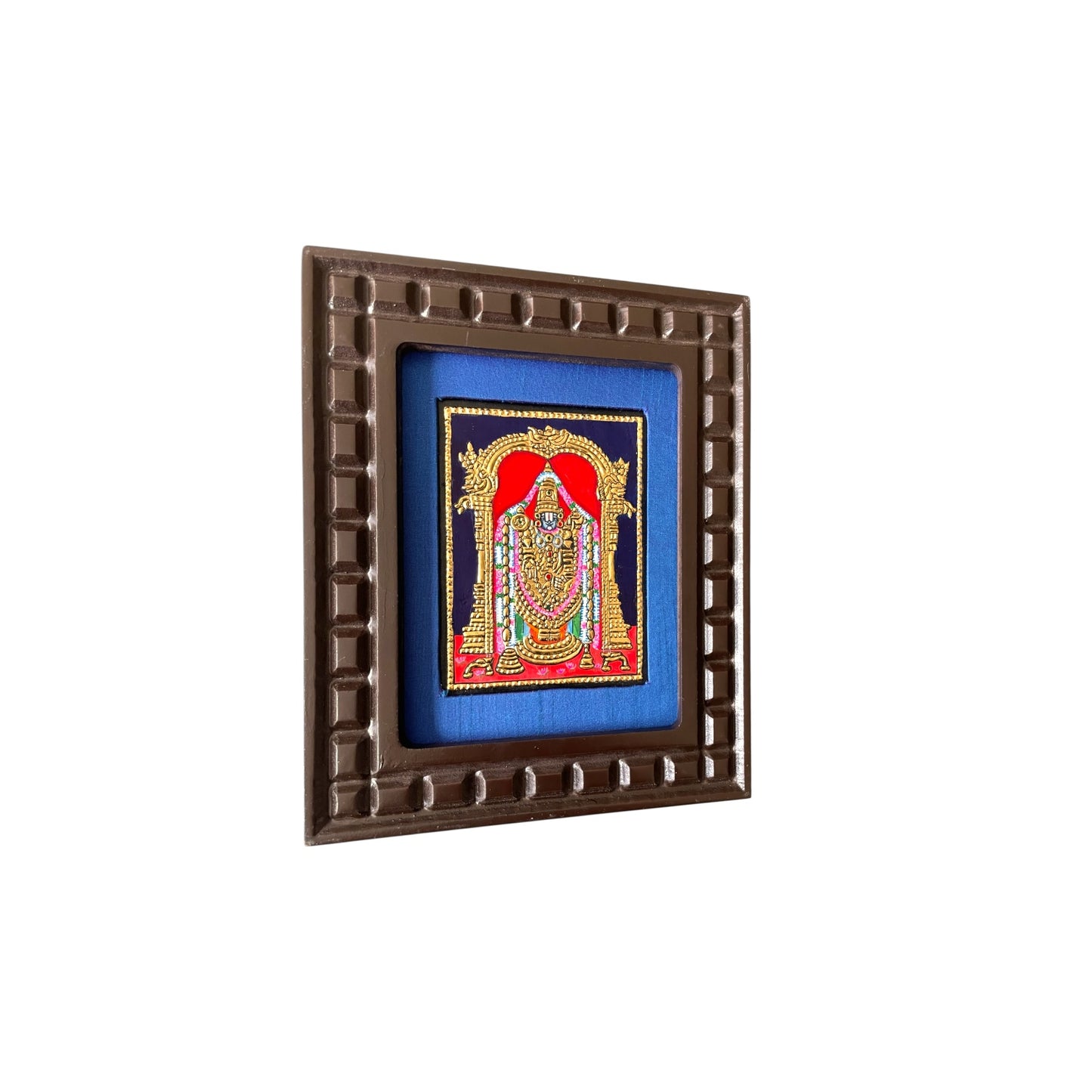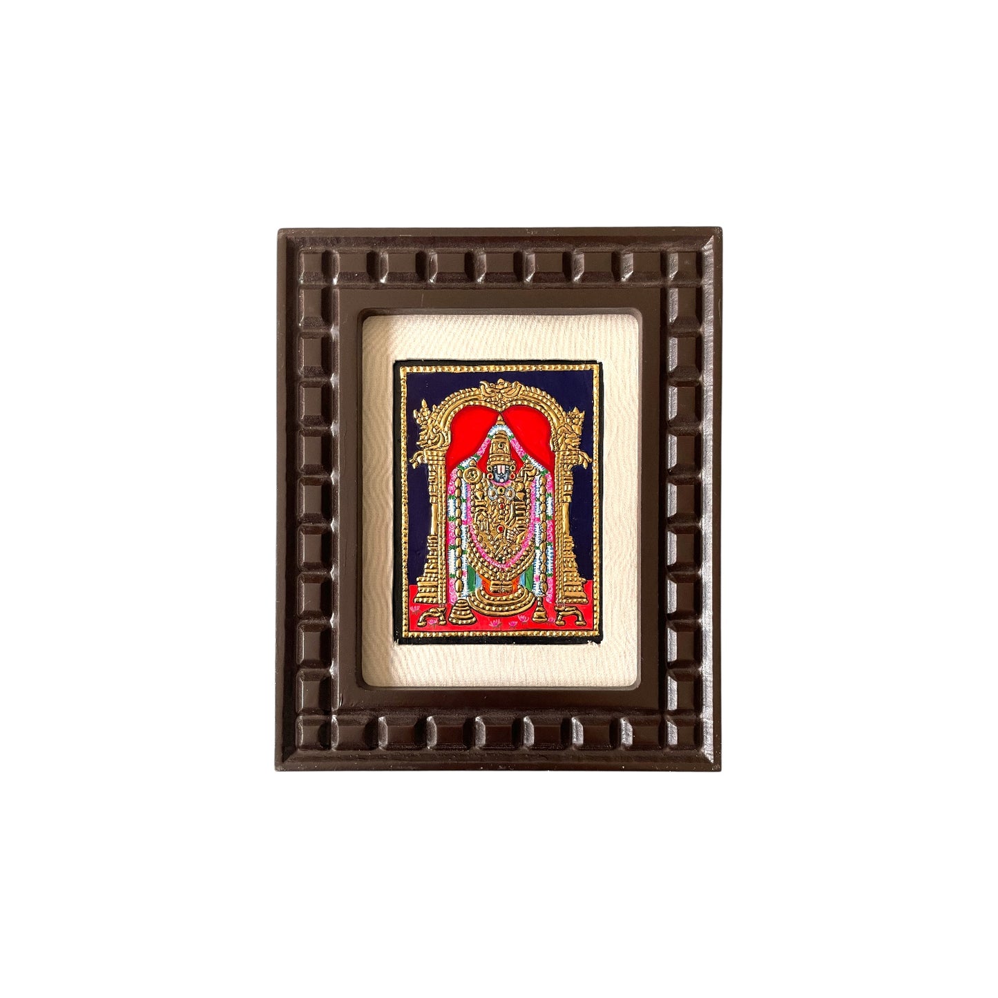 Depicts Lord Venkateshwara in traditional Tanjore art style.