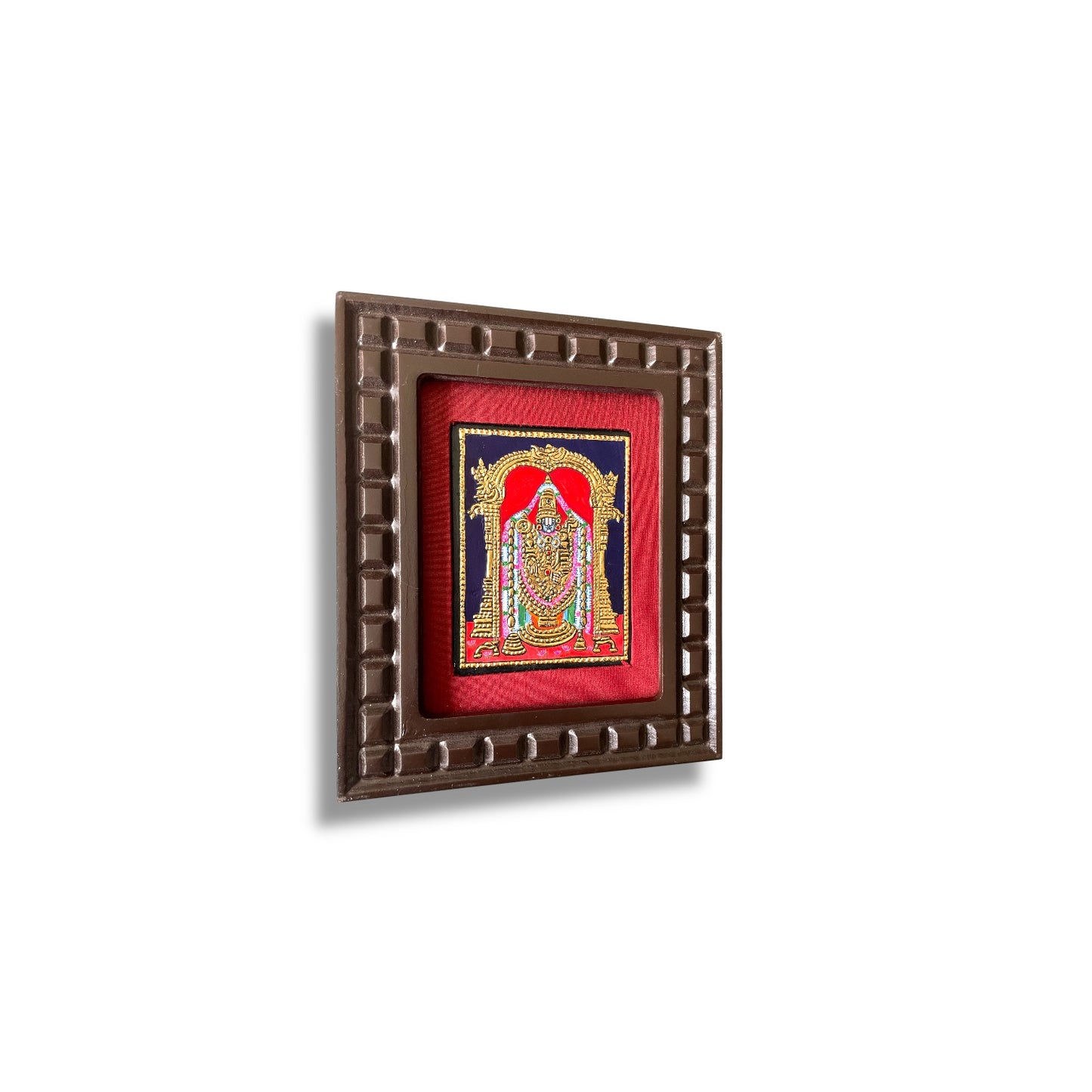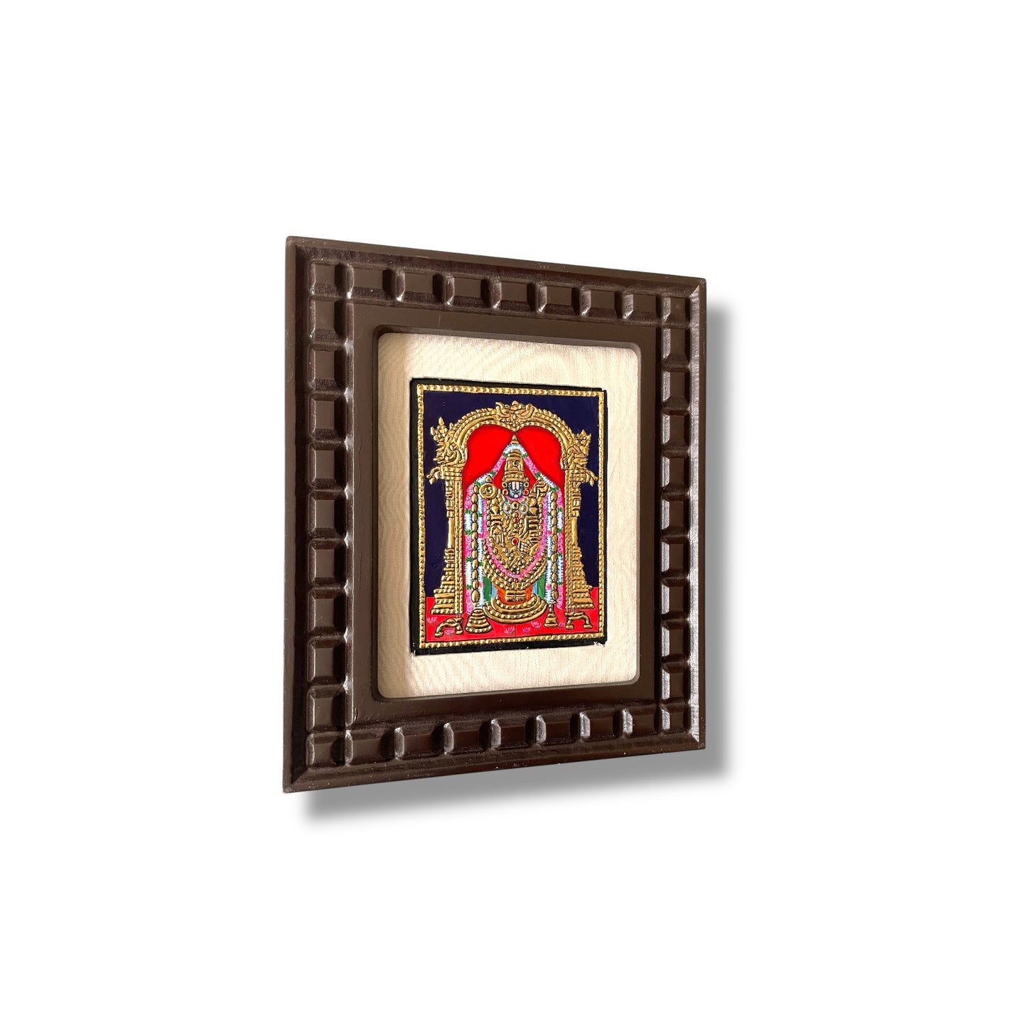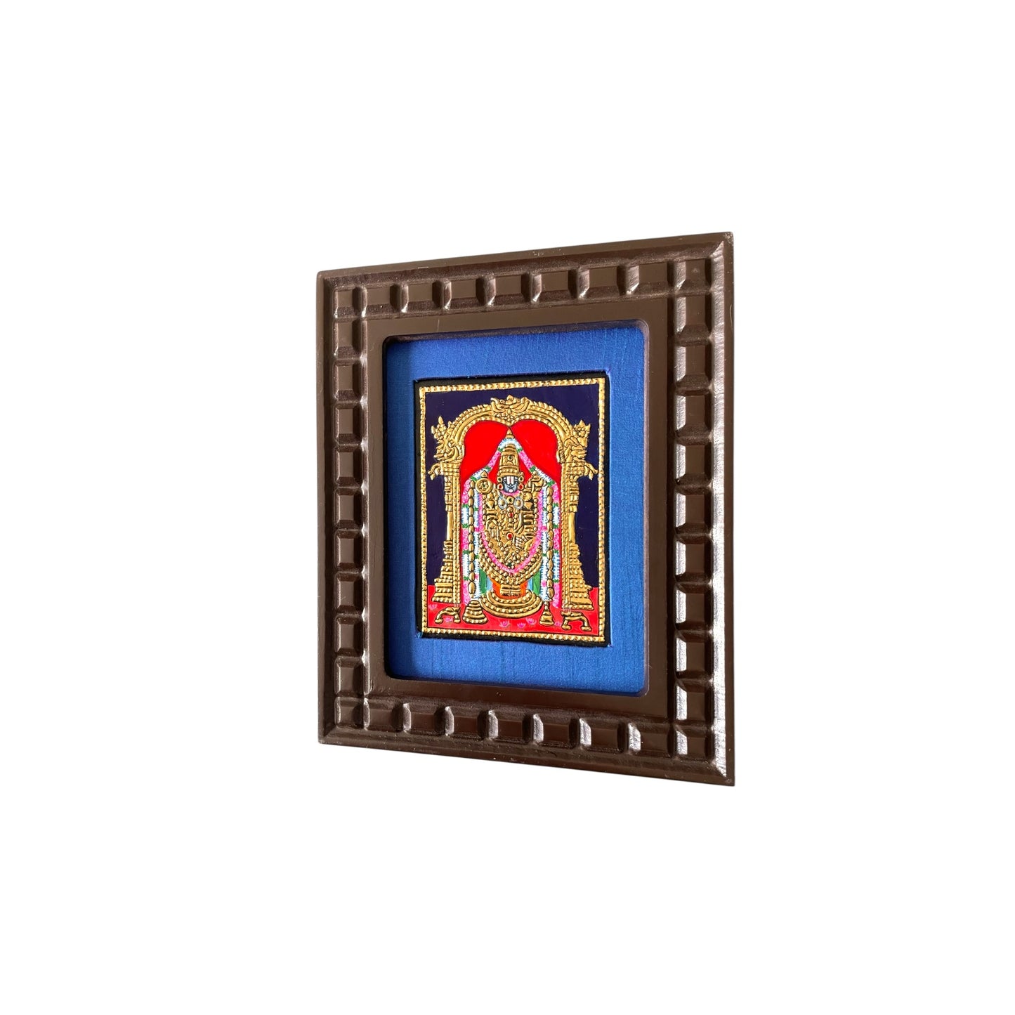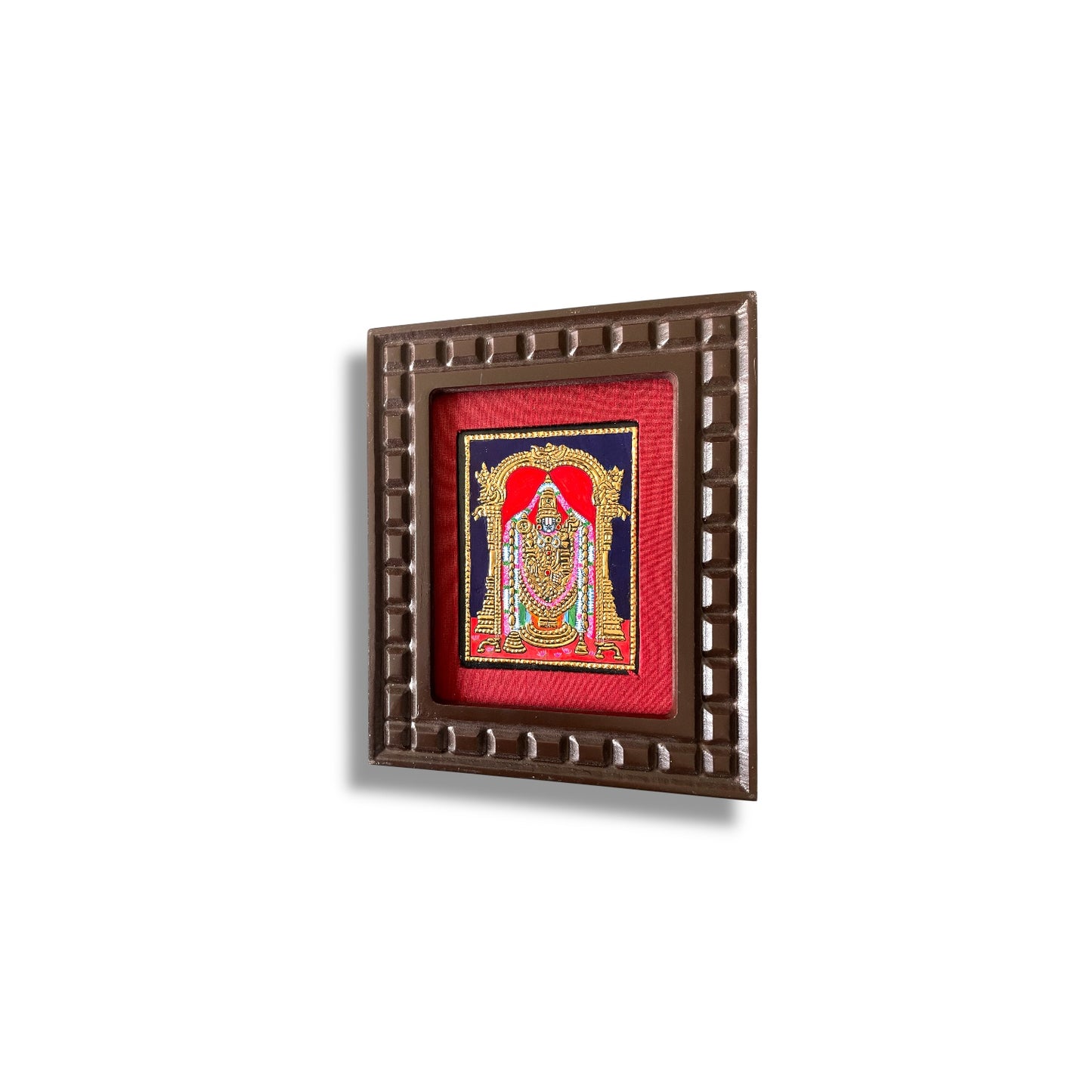 Depicts Lord Venkateshwara in traditional Tanjore art style.