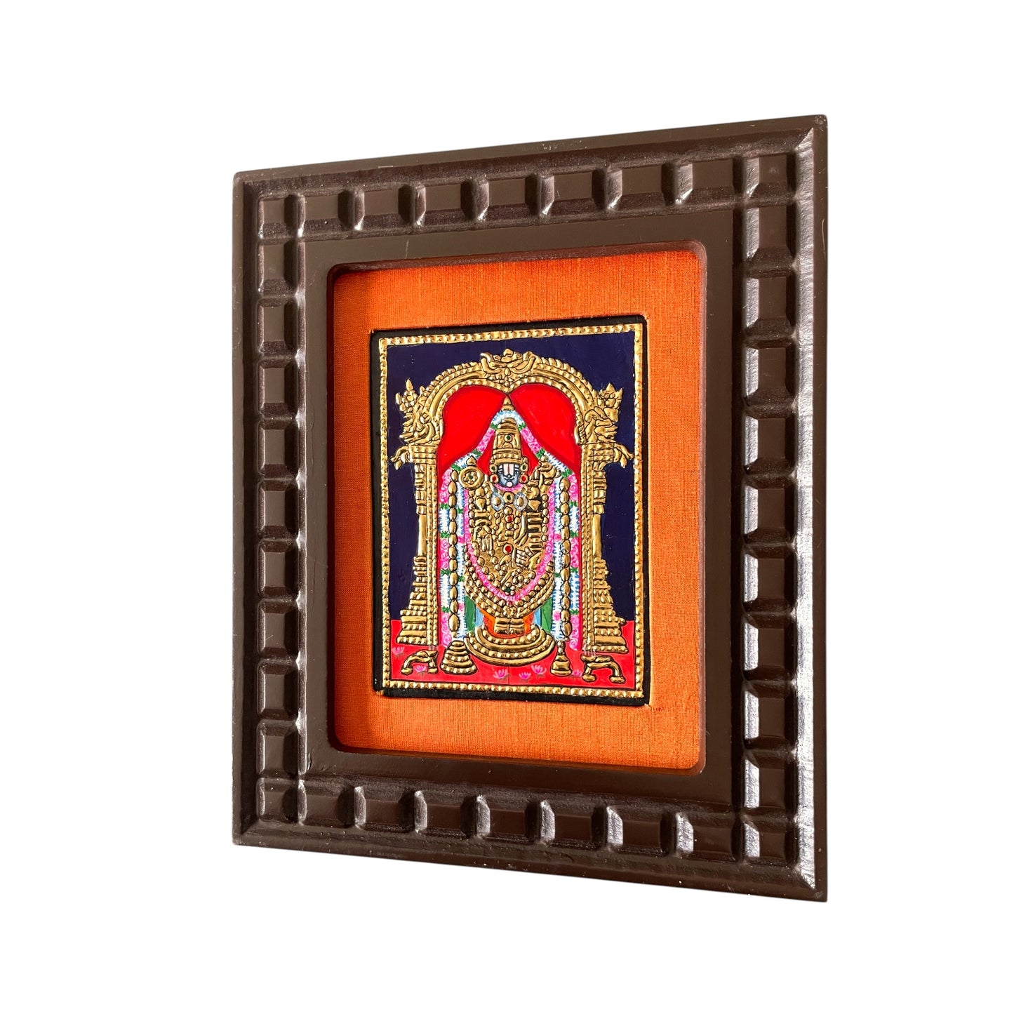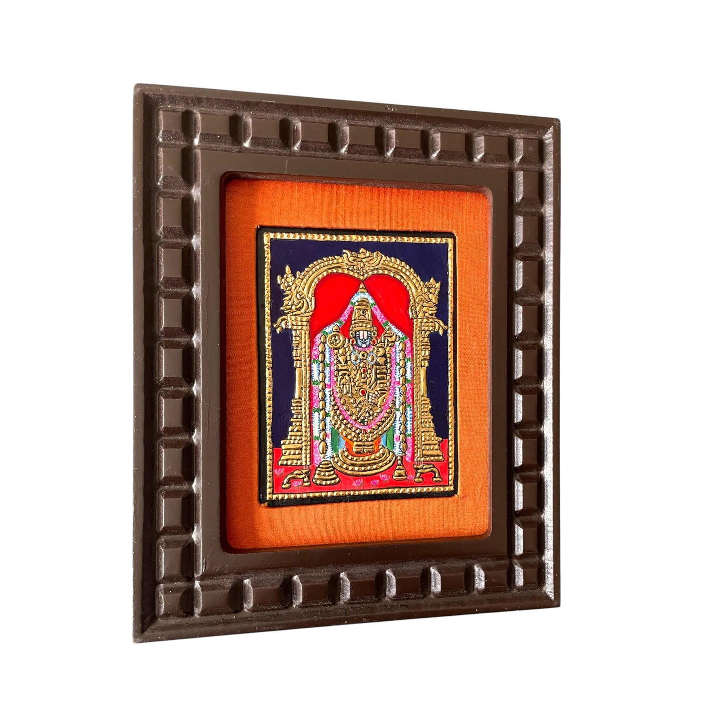 Lord Venkateshwara Tanjore Painting in Orange, Red, Indigo Blue, White and Rama Green