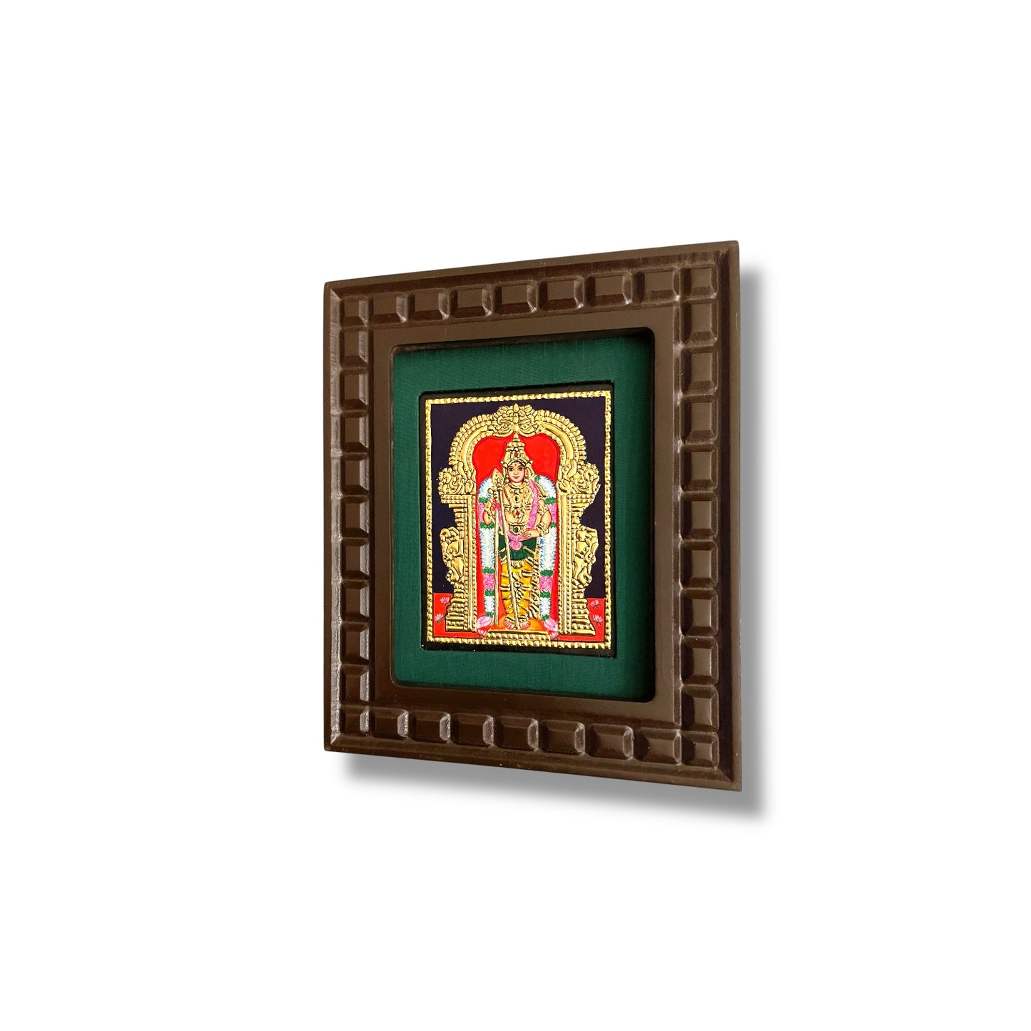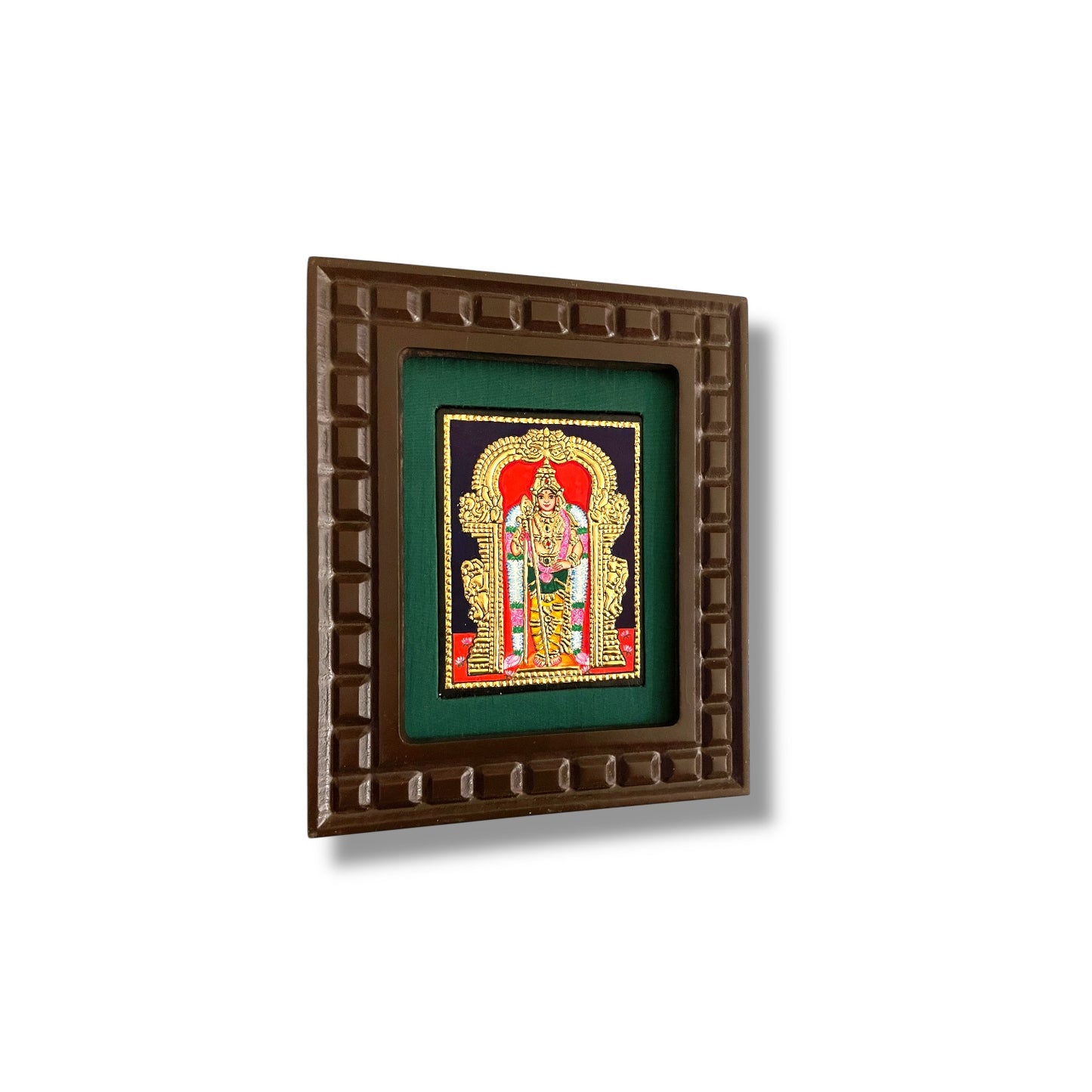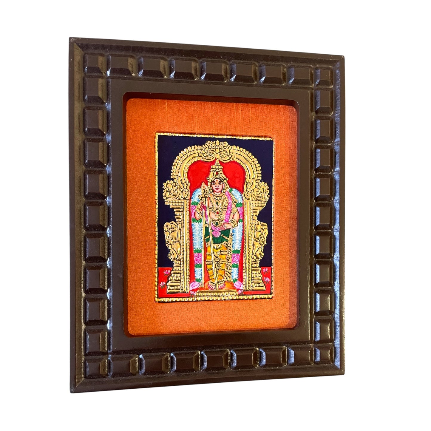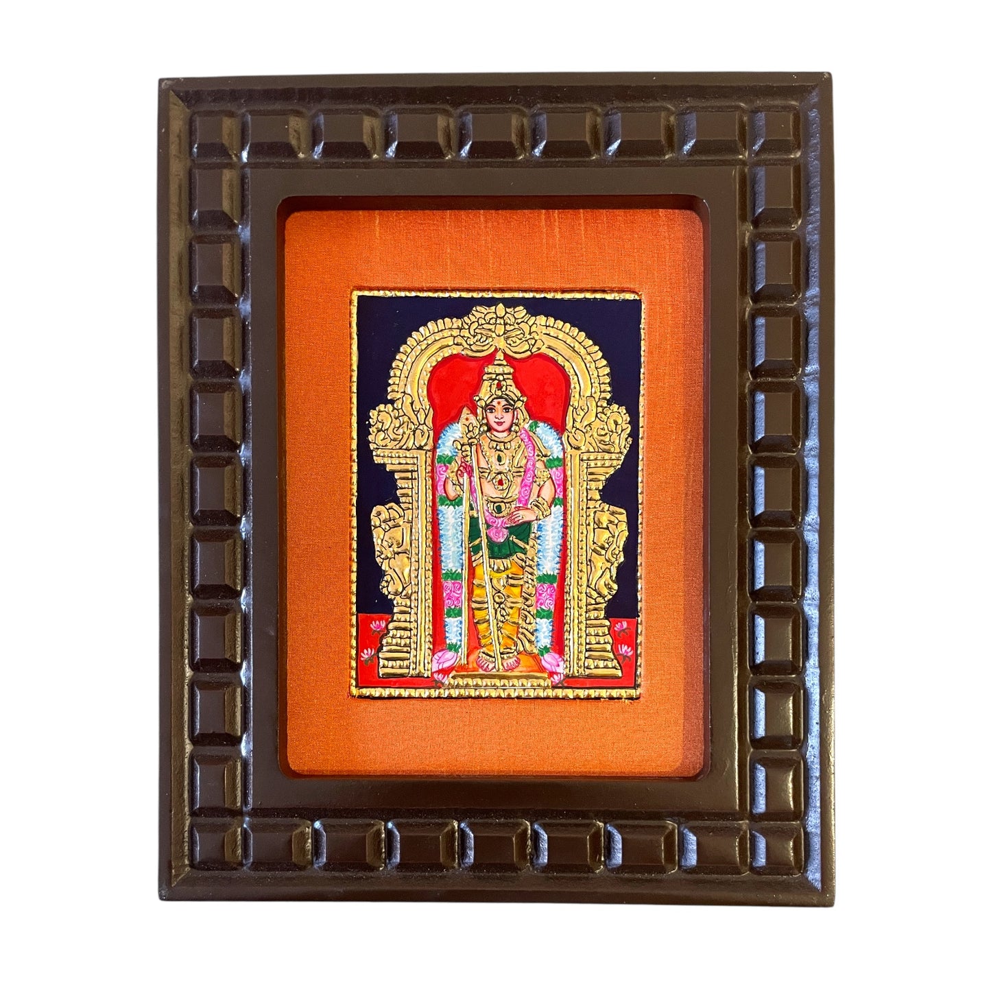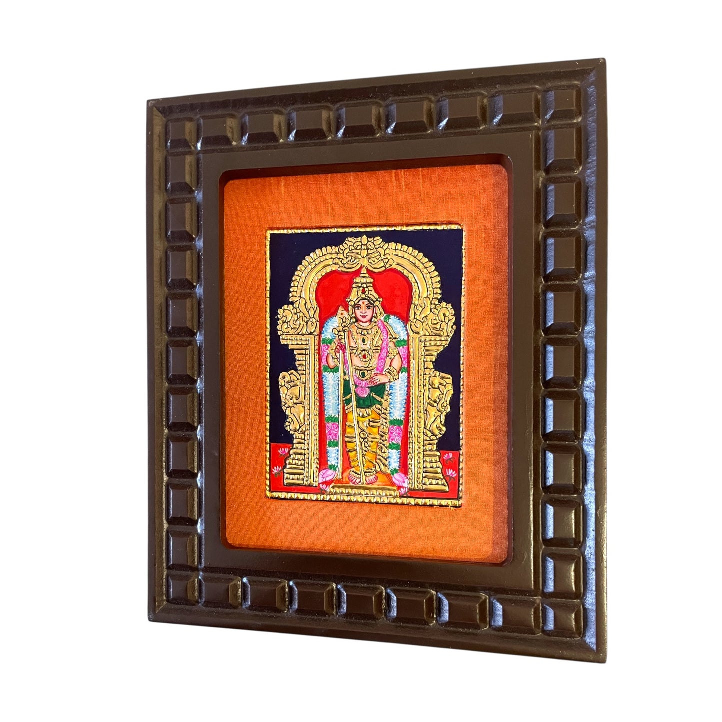 Thiruchendur Murugan Tanjore Painting with Handcrafted Wooden Frame(Orange,Red,Indigo Blue,White,Rama green)