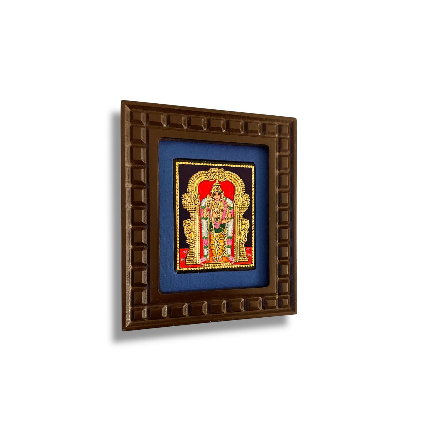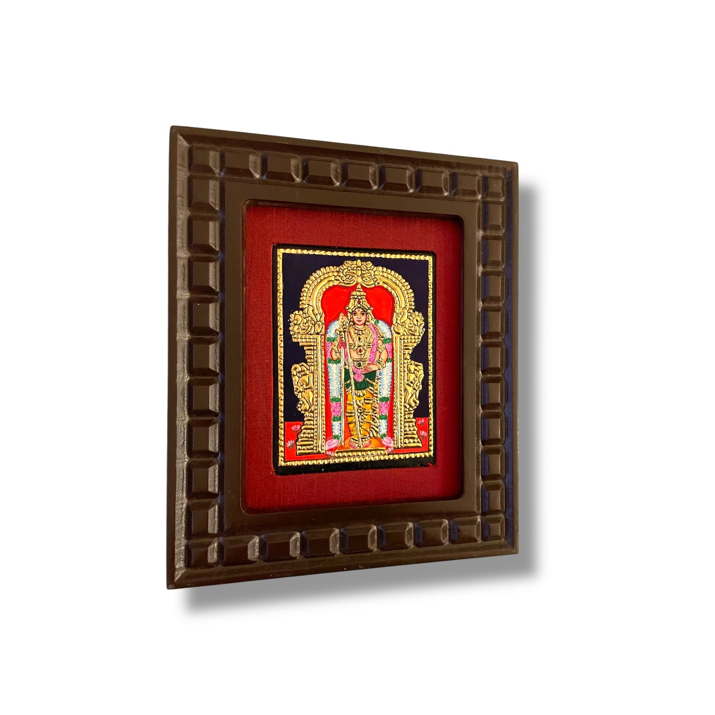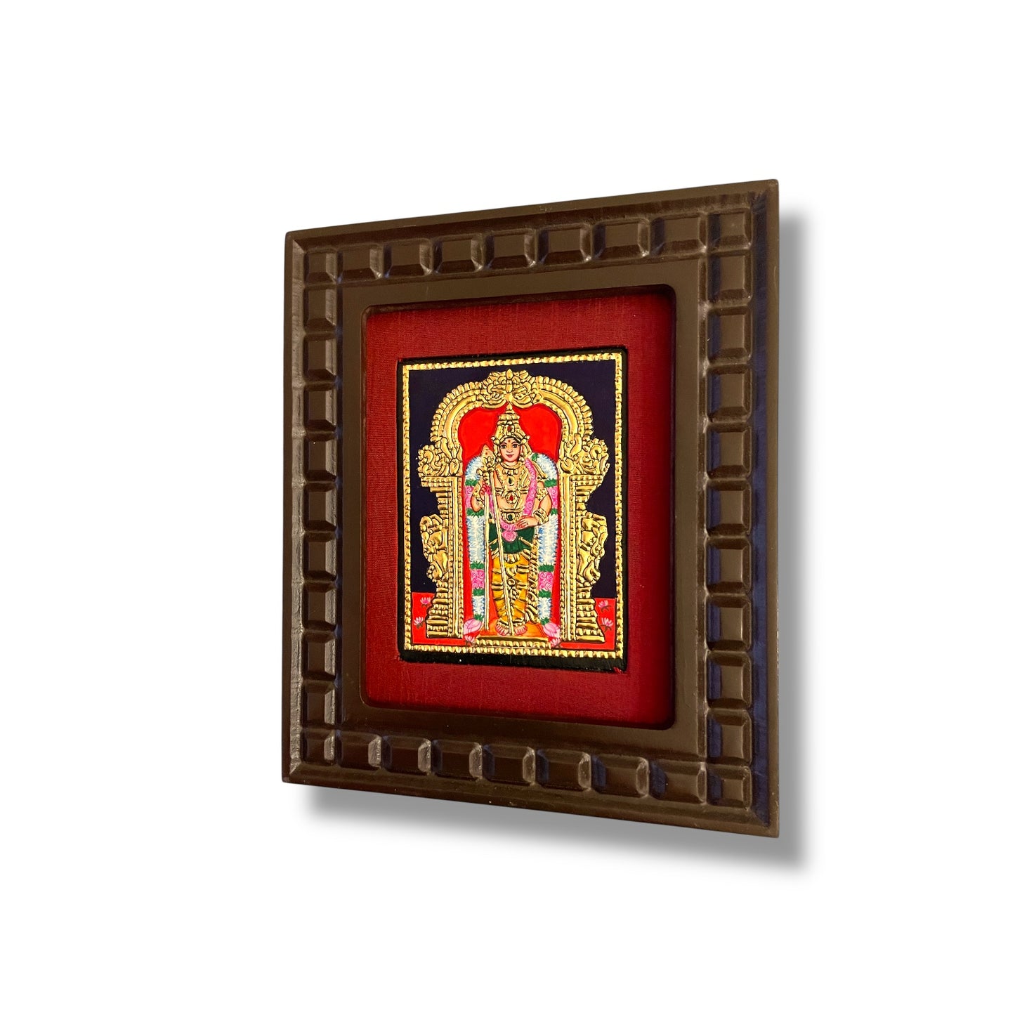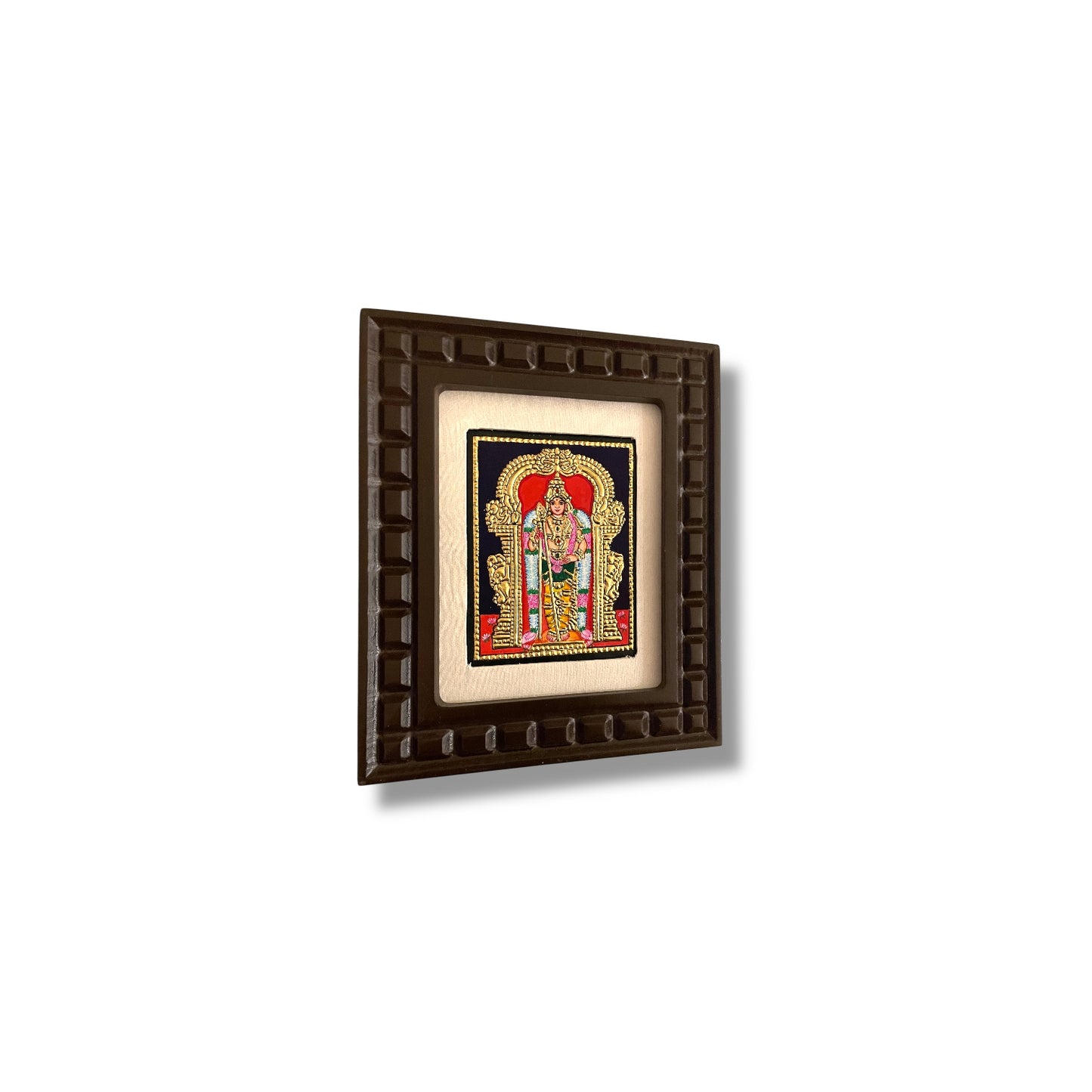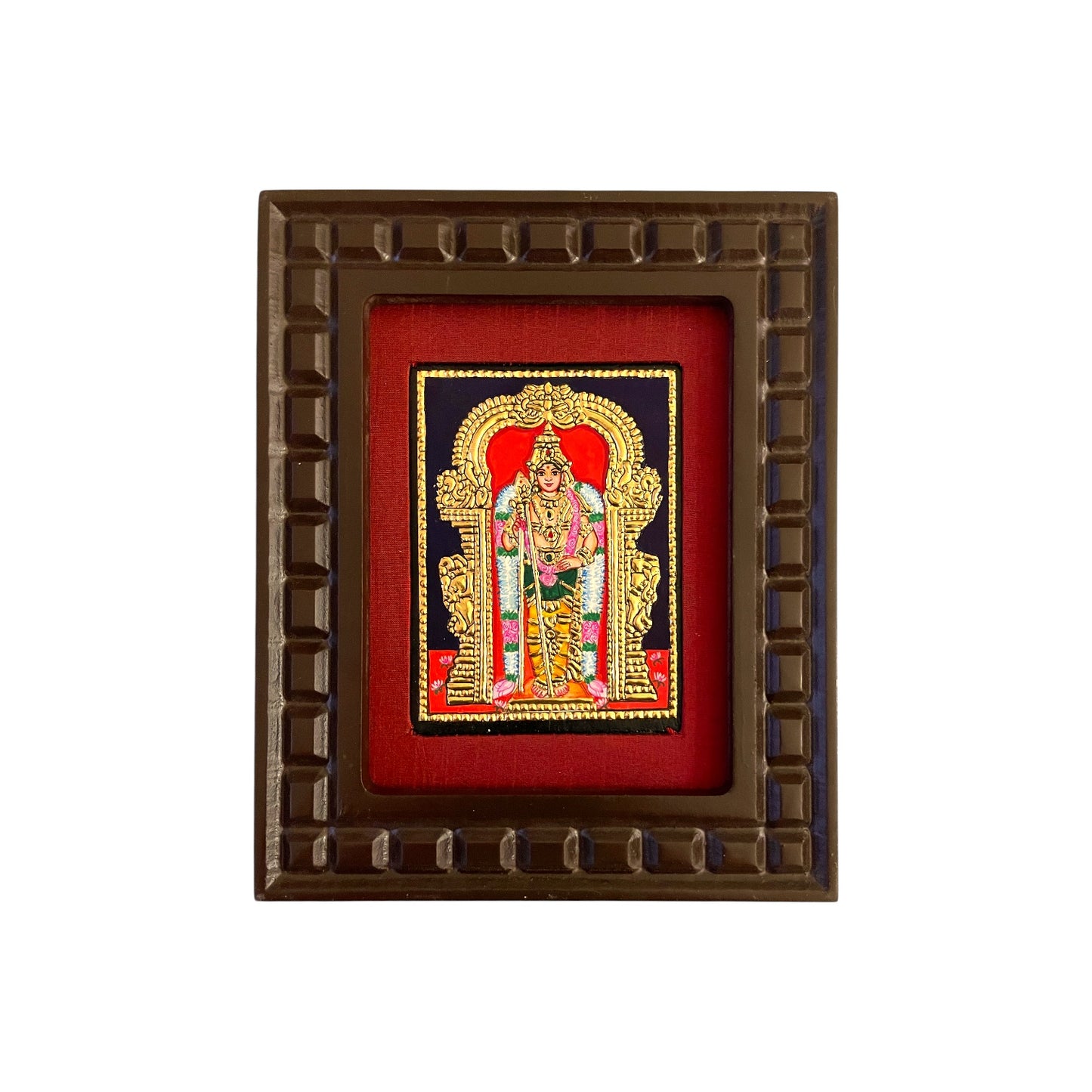 Thiruchendur Murugan Tanjore Painting with Handcrafted Wooden Frame(Orange,Red,Indigo Blue,White,Rama green)