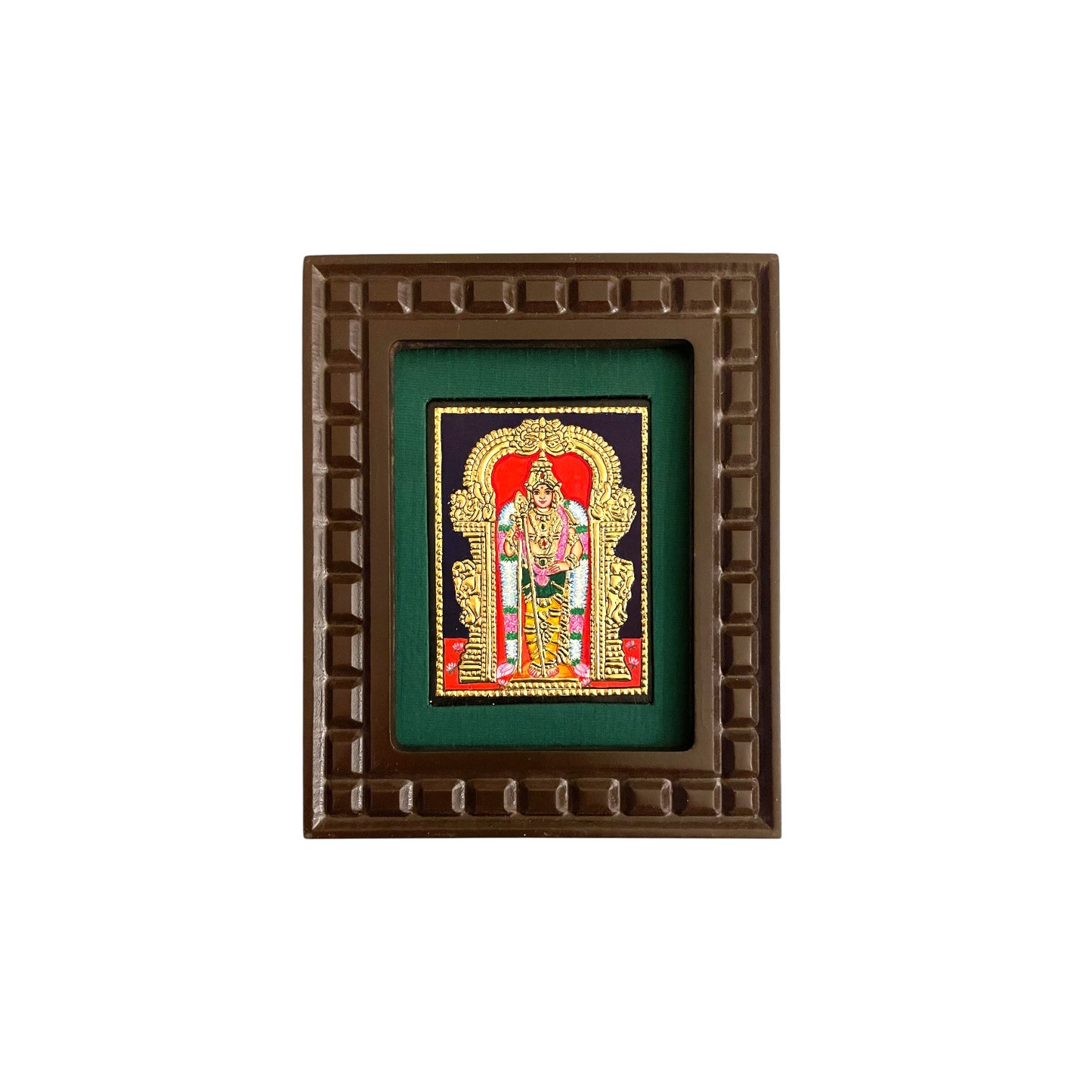 Regular price Rs. 5,900.00This authentic Tanjore painting portrays Lord Murugan (Subramanya), the divine son of Lord Shiva and Goddess Parvati, in his sacred form worshipped at Thiruchendur, one of the six abodes of Murugan. Depicted in a graceful standing posture with his Vel (divine spear), the painting is adorned with pure gold foil, vibrant natural colors, and intricate detailing, showcasing the beauty of traditional South Indian craftsmanship.