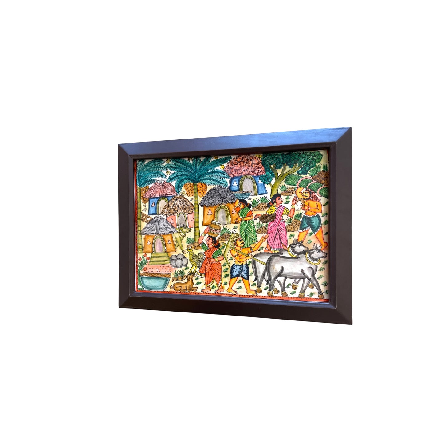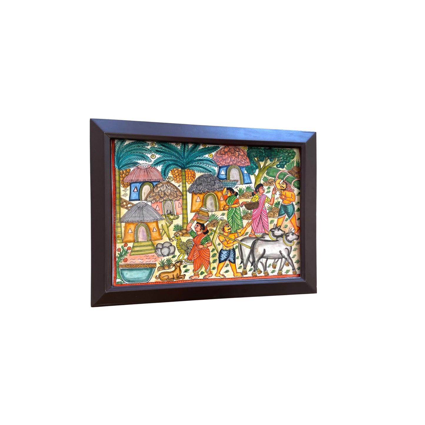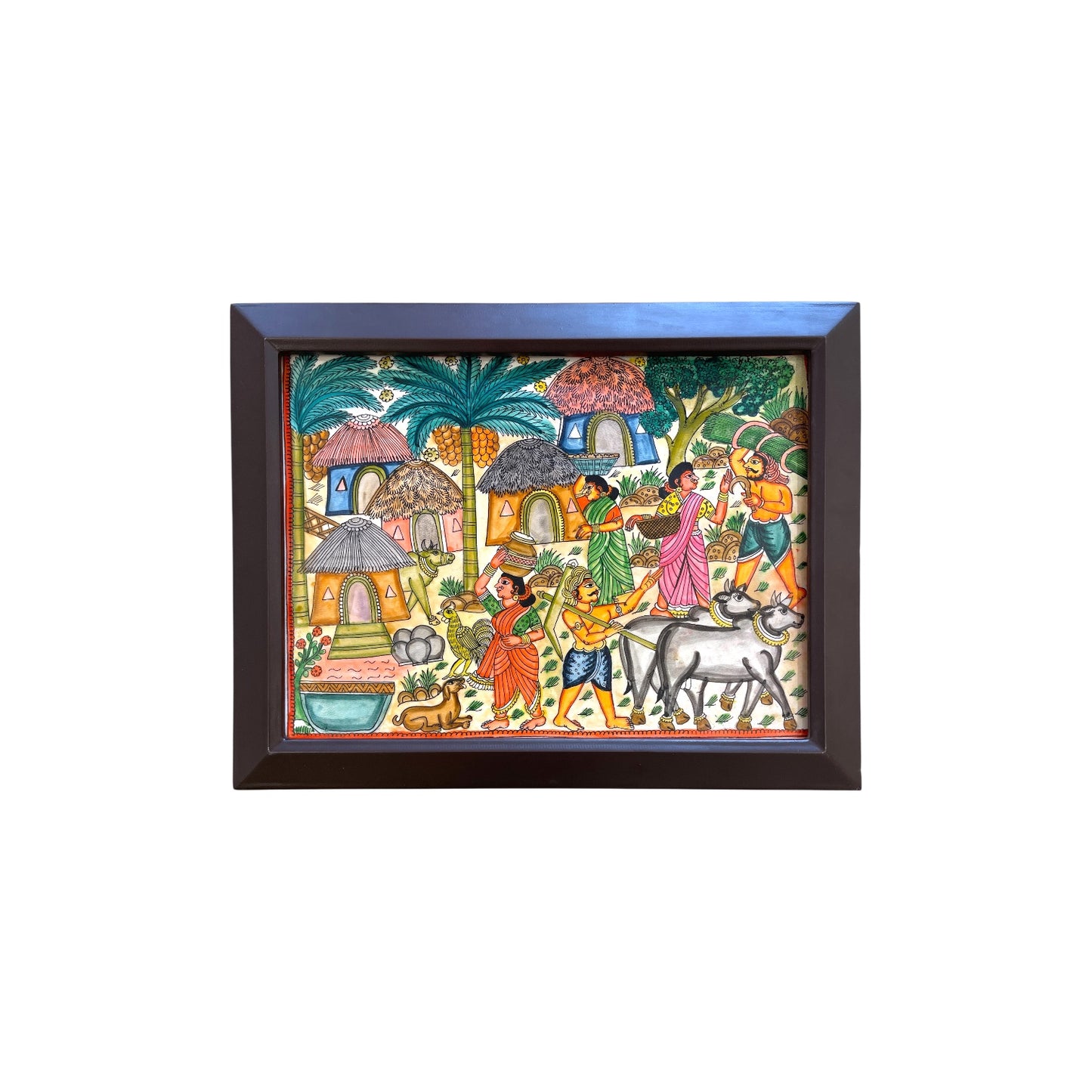 Handmade Kalamkari Village Scene Painting | Traditional Indian Folk Art Wall Décor