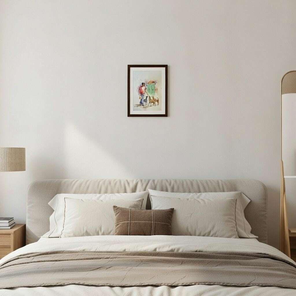 This handcrafted watercolour artwork captures a heartfelt moment of compassion—a young boy pausing to feed street dogs, reflecting empathy, humanity, and everyday kindness. Painted using traditional watercolour techniques, the artwork features fluid brushstrokes, soft color transitions, and an expressive narrative that feels both intimate and universal.
