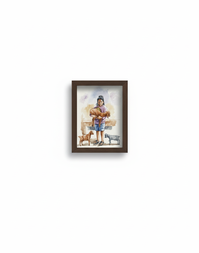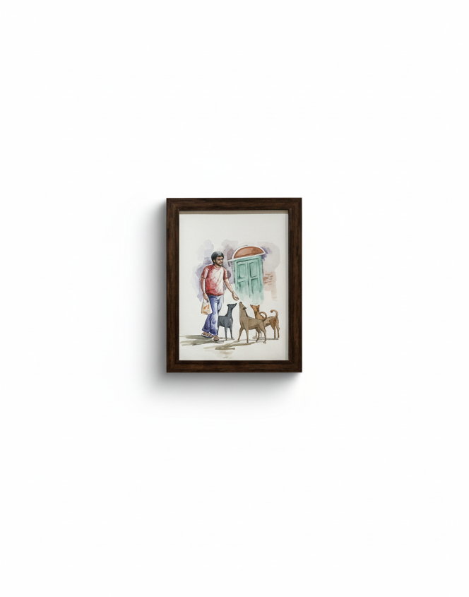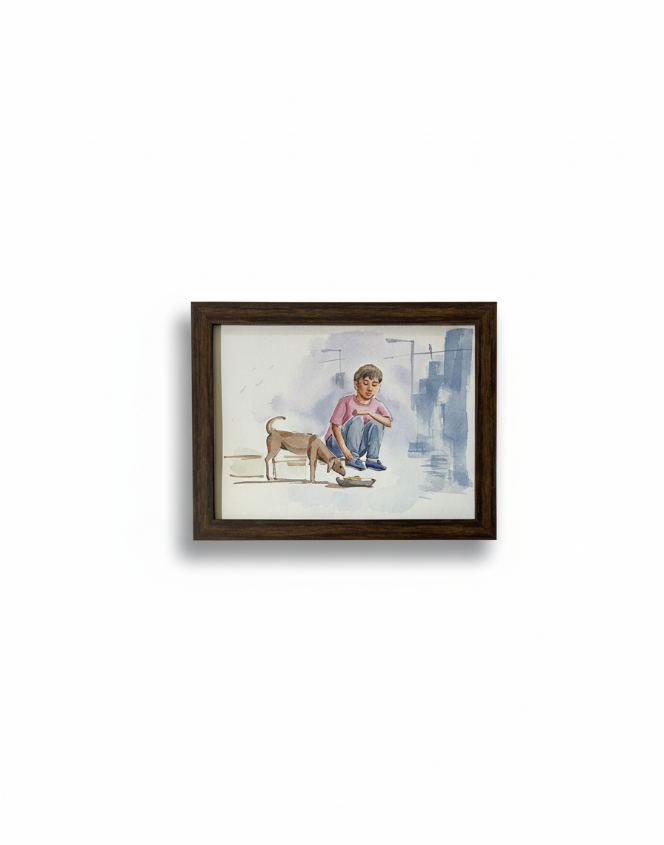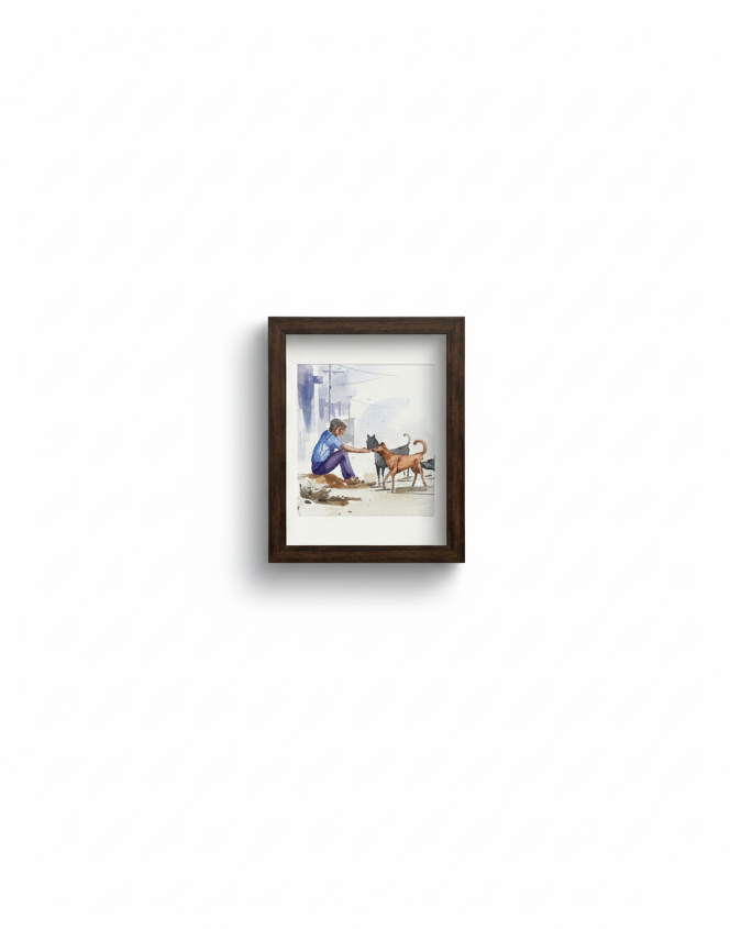 Painted using high-quality water colour paints on premium art paper, these illustrations feature gentle, playful moments with street animals—perfect for inspiring kindness and imagination in kids while adding a unique artistic touch to your home décor.