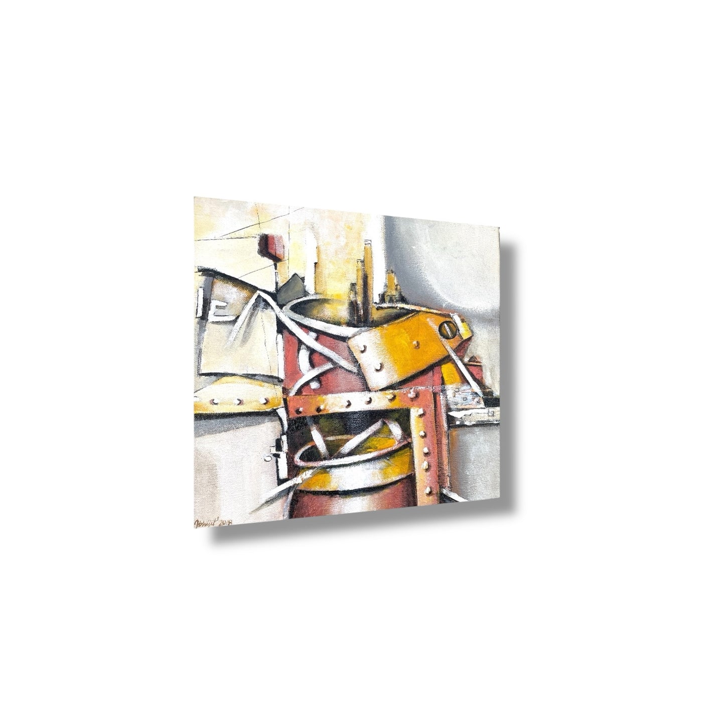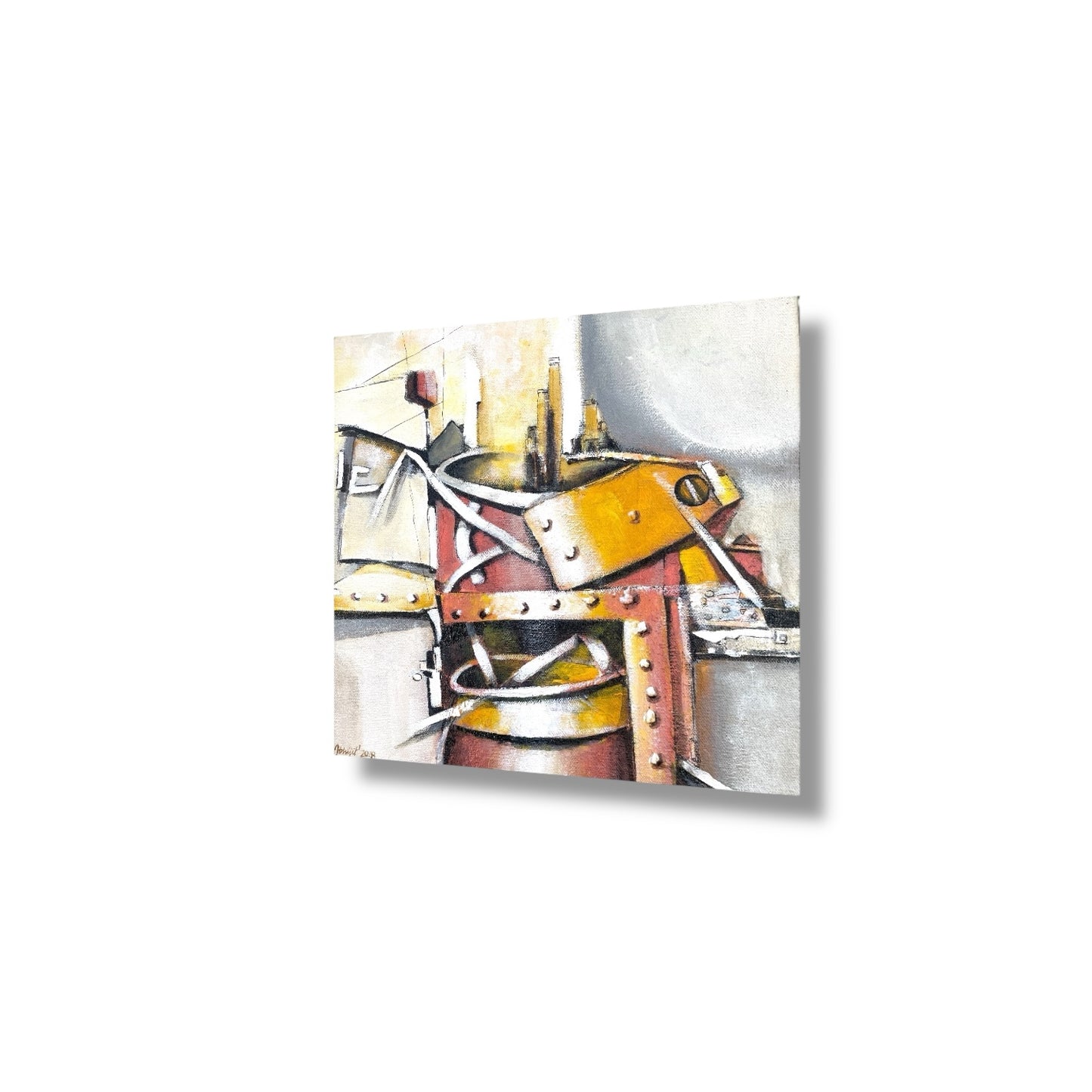 Abstract Industrial Art | Modern Geometric Abstract Painting in Yellow & Rust Tones