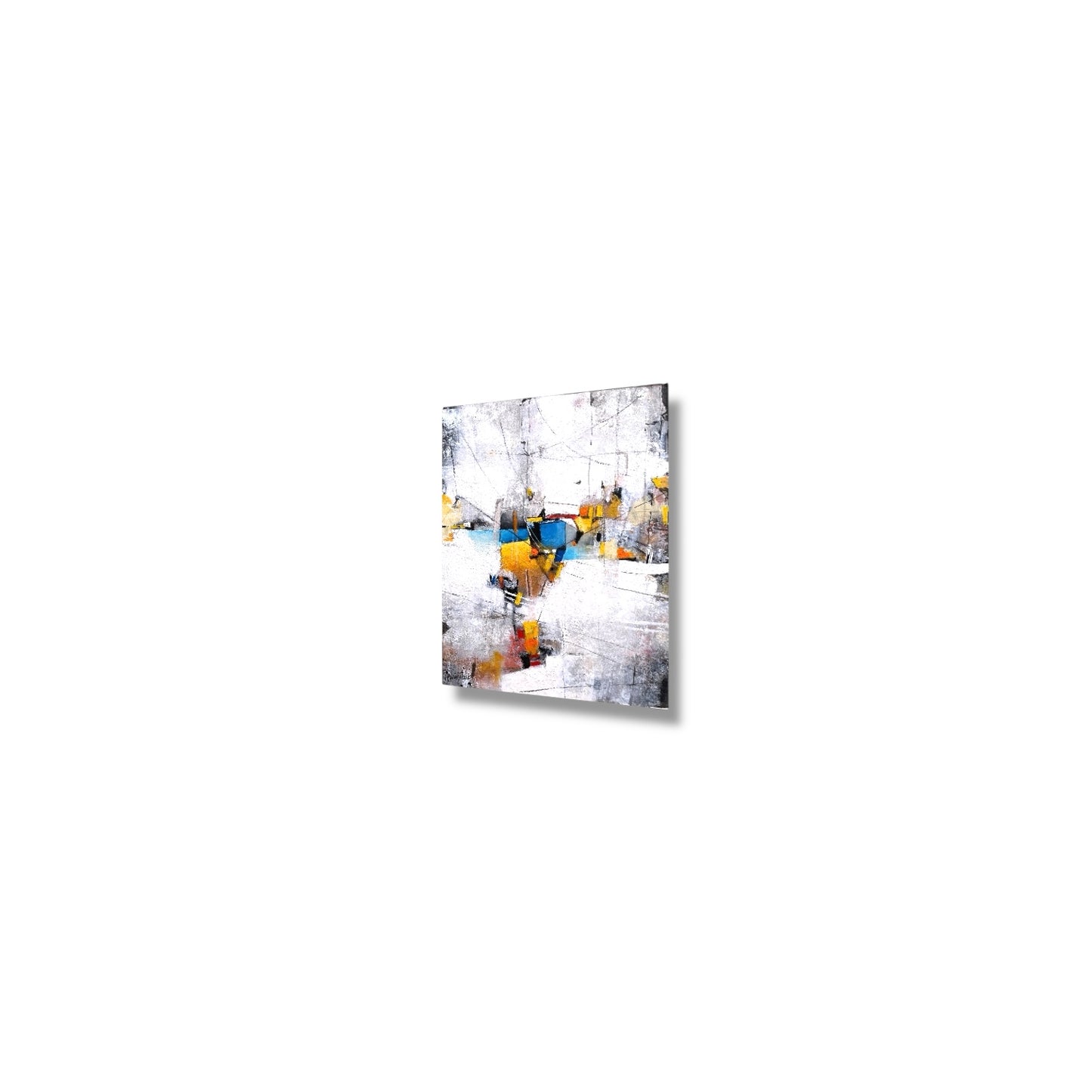 Abstract Modern Painting | Textured Wall Art in White, Blue, Yellow and Red