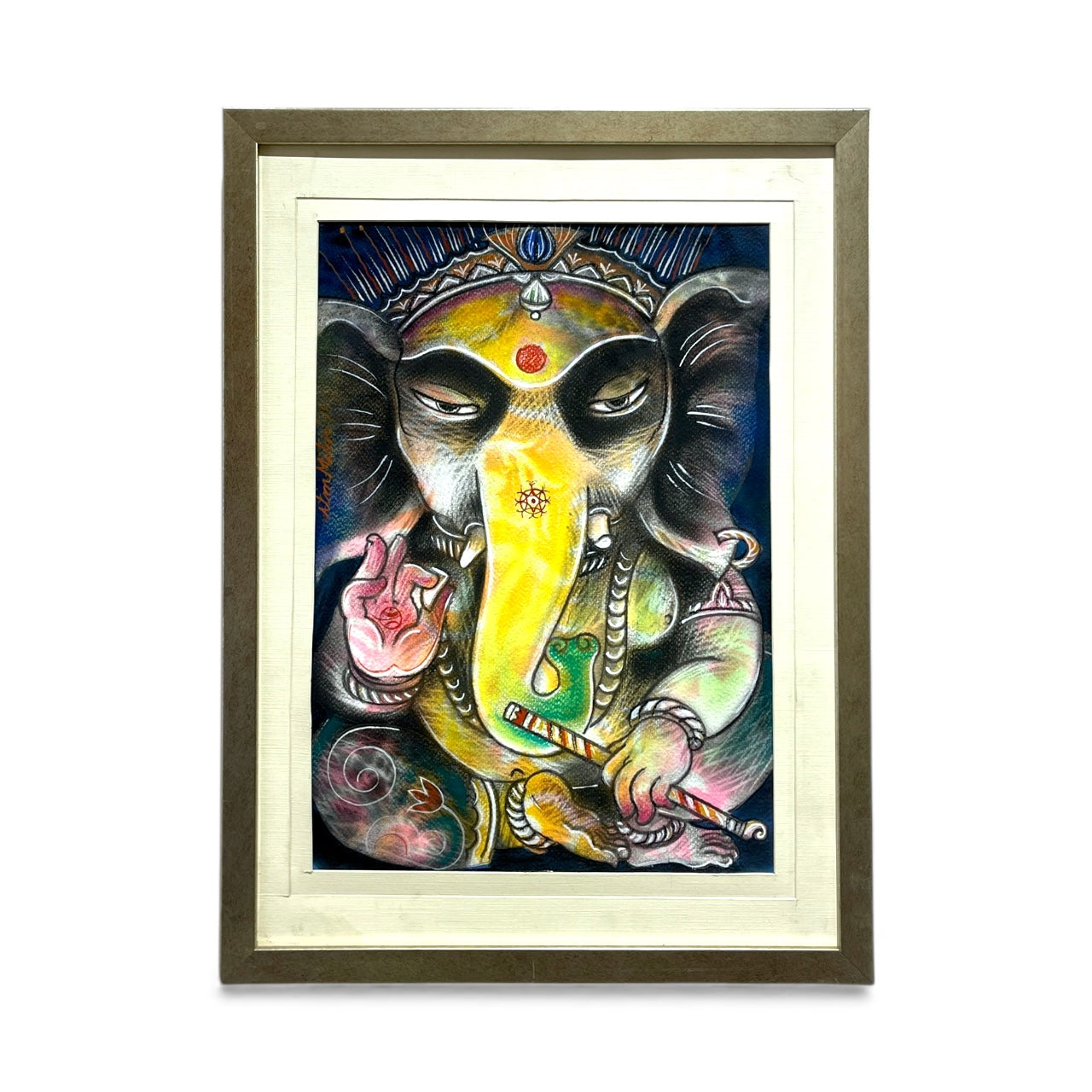 Original Lord Ganesha Acrylic Painting on Canvas – Framed Spiritual Wall Art with White Mount